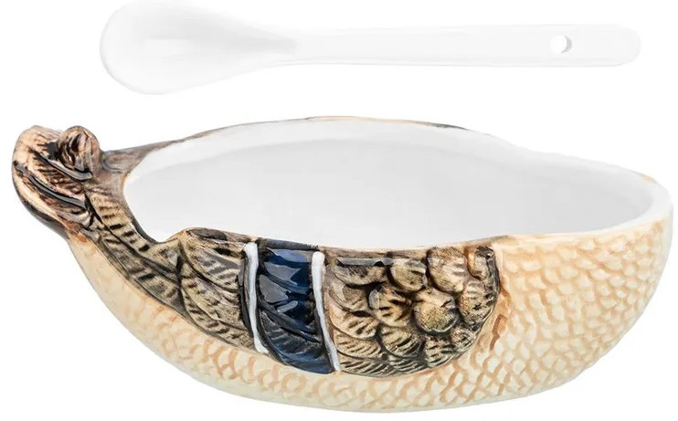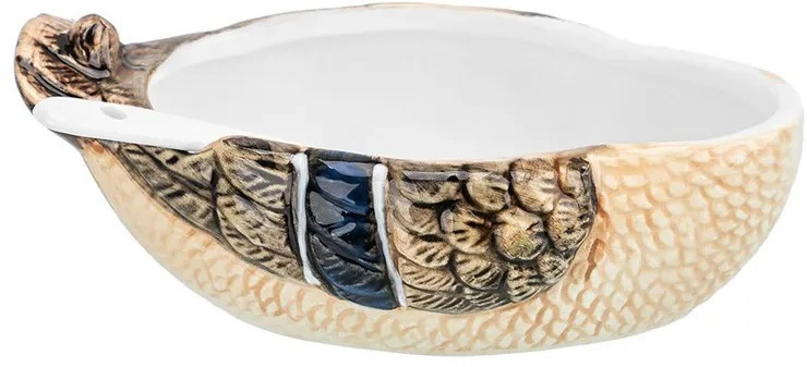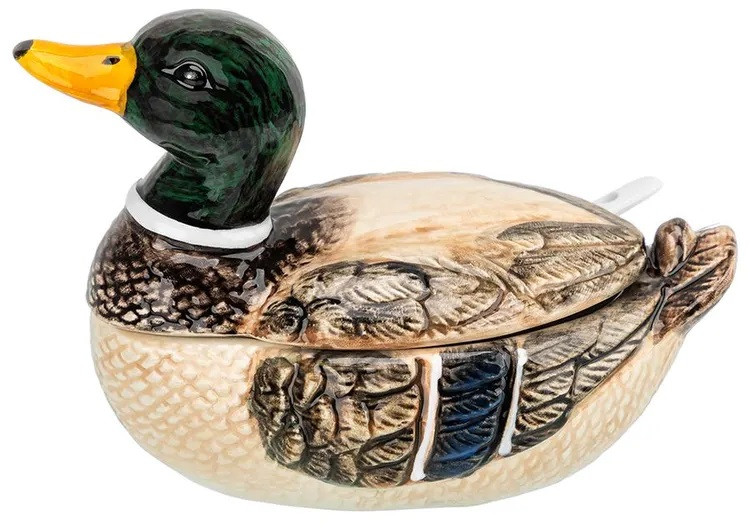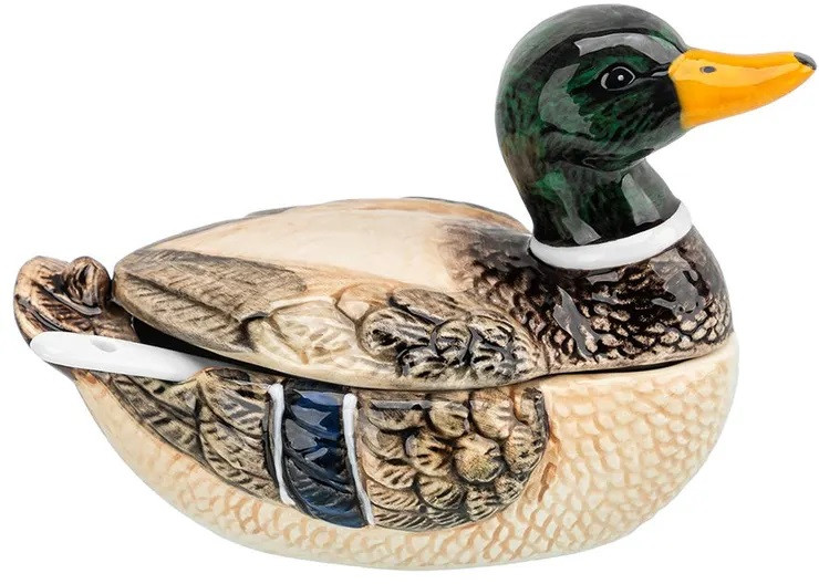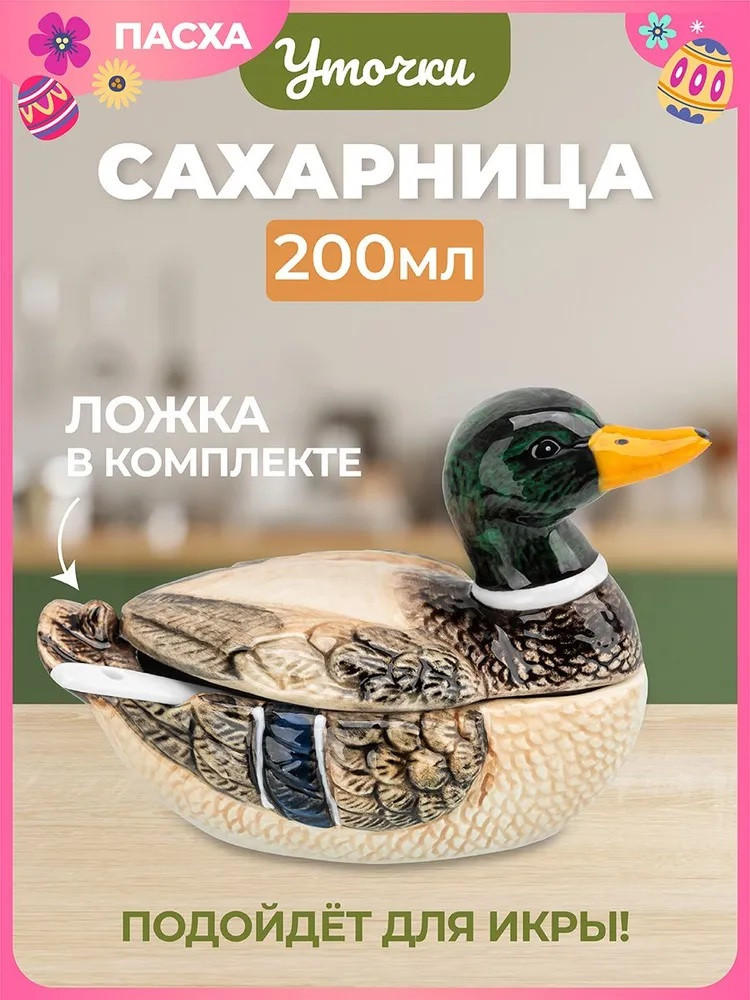 Сахарница Cелезень объемом 200 мл с ложкой и крышкой станет настоящим украшением стола и интерьера кухни. Выполнена из керамики в виде цветной и детализированной уточки. Сахарница подойдет для хранения и сервировки любых сыпучих продуктов и станет чудесным предметом декора.