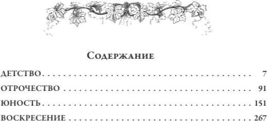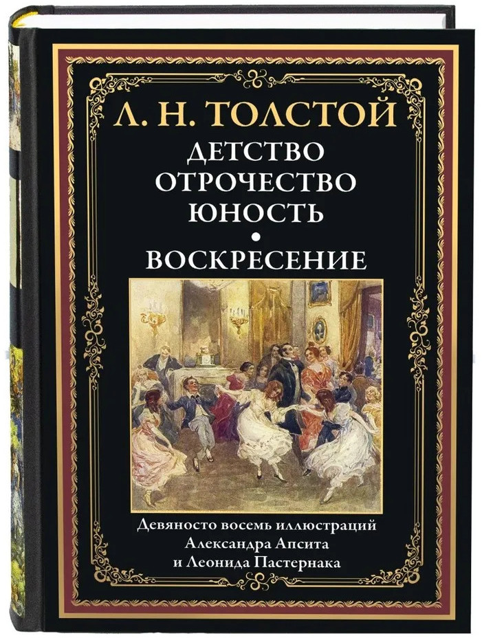 В сборник вошли три произведения классика русской и мировой литературы Льва Николаевича Толстого (1828–1910): повести «Детство» (1852), «Отрочество» (1854) и «Юность» (1857) и роман «Воскресение» (1889–1899). Книгу украшают 98 рисунков художников Александра Петровича Апсита (1880–1944) и Леонида Осиповича Пастернака (1862–1945). |