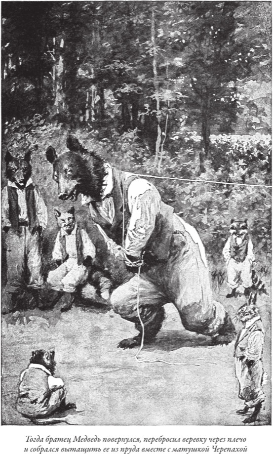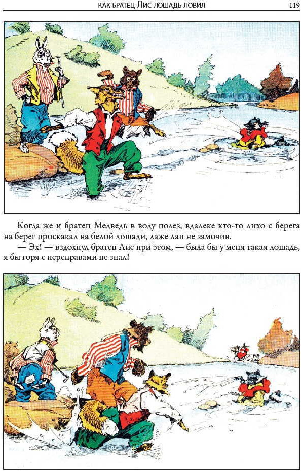Американцы увидели, как выглядит братец Кролик и другие персонажи из сказок Харриса благодаря рисунками Артура Фроста. Именно этот американский художник проиллюстрировал в конце XIX в. первые издания «Сказок дядюшки Римуса». За свою довольно долгую жизнь Фрост создал сотни картин, одним из первых начал рисовать комиксы, однако громкую славу ему принесли именно созданные им образы «братцев» из сказок Харриса. В этом издании можно полюбоваться на множество его рисунков. Другие иллюстрации выполнены современниками и соотечественниками Фроста — Дж. М. Конде и Ф. Вер Беком. |