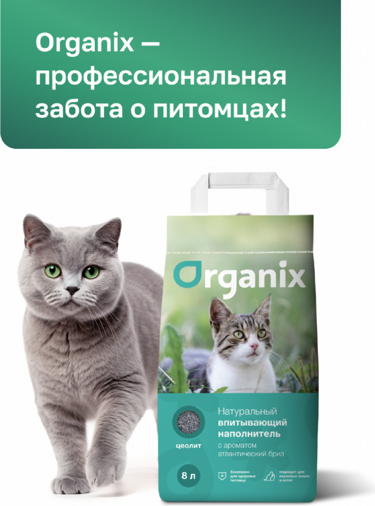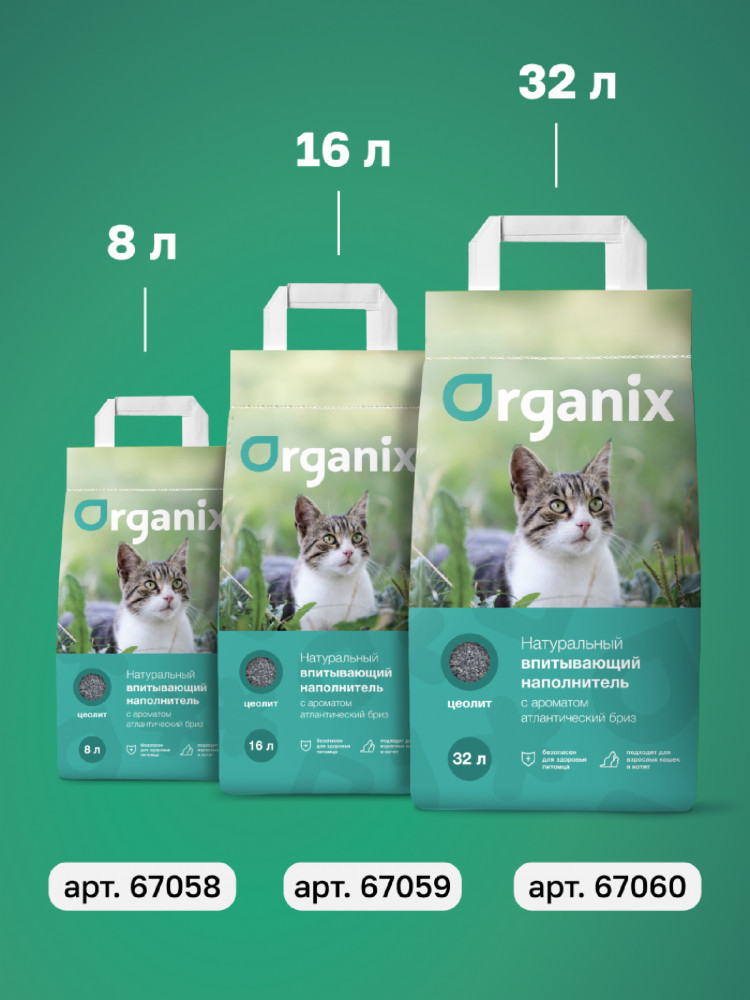 Гранулы наполнителя Organix созданы из пористого минерала на основе цеолита, который обладает высокой абсорбирующей способностью и препятствует распространению неприятного запаха. Фракция: 2-8 мм. Наполнитель быстро впитывает влагу и препятствует разложению болезнетворных организмов. Гранулы не пылят и не прилипают к лапкам и шерсти животного. При намокании раскрывается приятный аромат атлантического бриза. С наполнителем Organix легко поддерживать чистоту кошачьего лотка!