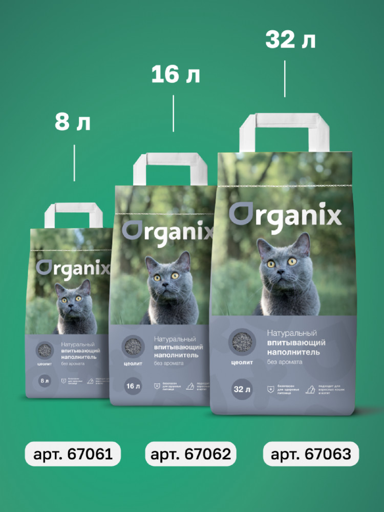 Гранулы наполнителя Organix созданы из пористого минерала на основе цеолита, который обладает высокой абсорбирующей способностью и препятствует распространению неприятного запаха. Фракция: 2-8 мм. Наполнитель быстро впитывает влагу и препятствует разложению болезнетворных организмов. Гранулы не пылят и не прилипают к лапкам и шерсти животного. С наполнителем Organix легко поддерживать чистоту кошачьего лотка!