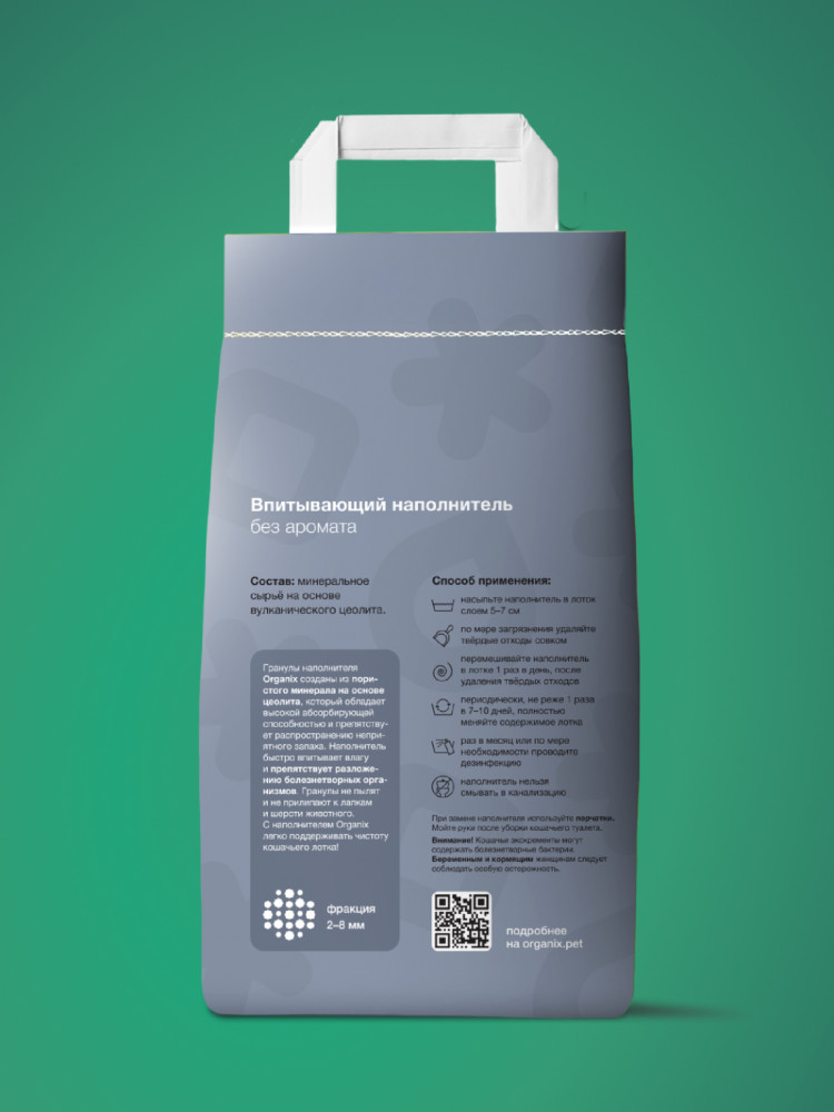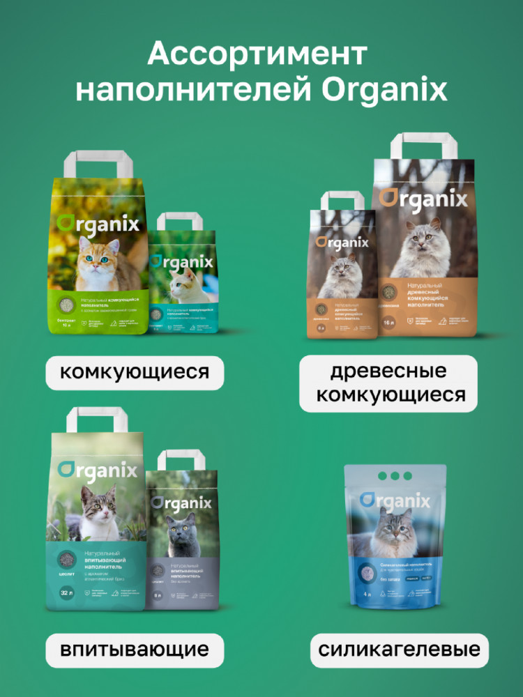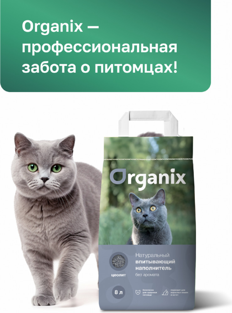 Гранулы наполнителя Organix созданы из пористого минерала на основе цеолита, который обладает высокой абсорбирующей способностью и препятствует распространению неприятного запаха. Фракция: 2-8 мм. Наполнитель быстро впитывает влагу и препятствует разложению болезнетворных организмов. Гранулы не пылят и не прилипают к лапкам и шерсти животного. С наполнителем Organix легко поддерживать чистоту кошачьего лотка!