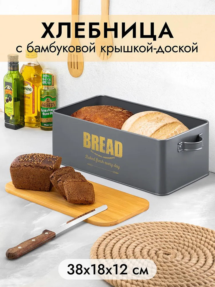 💳 Оплатить за товар можно при получении 🇰🇿 Есть бесплатная доставка по Казахстану от 1 дня 🎁 Копите бонусы с каждой покупки Хлебница с деревянной крышкой-доской предназначена для организации хранения продуктов на вашей кухне. Графитовый контейнер выполнен из металла, крышка — из натурального бамбука. На боковую стенку нанесена золотистая надпись «Bread. All natural ingredients. Baked fresh every day» («Хлеб. Только натуральные ингредиенты. Свежая выпечка каждый день»). Металлическая ёмкость не впитывает запахи, держит температуру, предотвращает попадание влаги и развитие плесени. Плотно прилегающая крышка надёжно защитит содержимое. Стильный дизайн настольного органайзера впишет его в интерьер любой кухни или столовой. Особенность изделия — это функционал 2 в 1: бамбуковая крышка также послужит в качестве разделочной доски. Вам больше не понадобится отдельное приспособление для того, чтобы нарезать хлеб перед подачей на стол. Прочные удобные ручки позволят легко переносить хлебницу, поэтому она подойдёт для сервировки стола. Большую прямоугольную ёмкость можно приспособить не только под хлеб и выпечку, но и для хранения пакетов с печеньем или конфетами. |