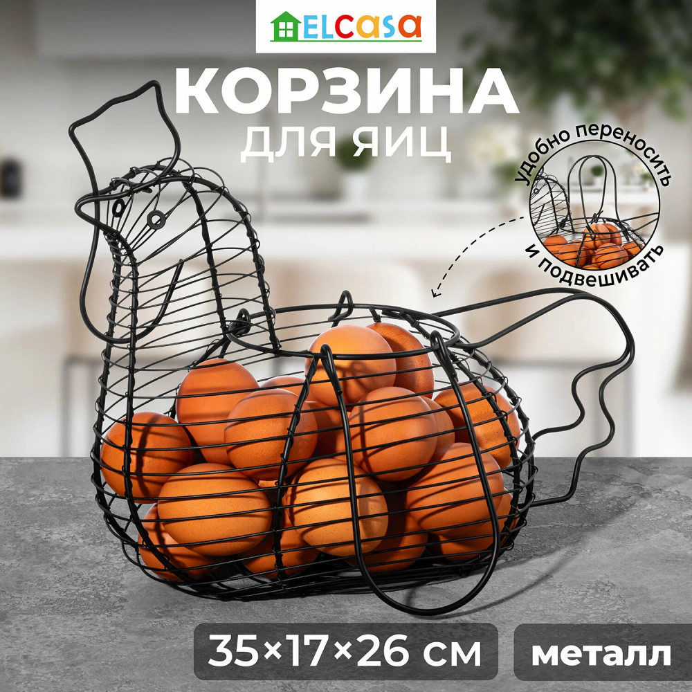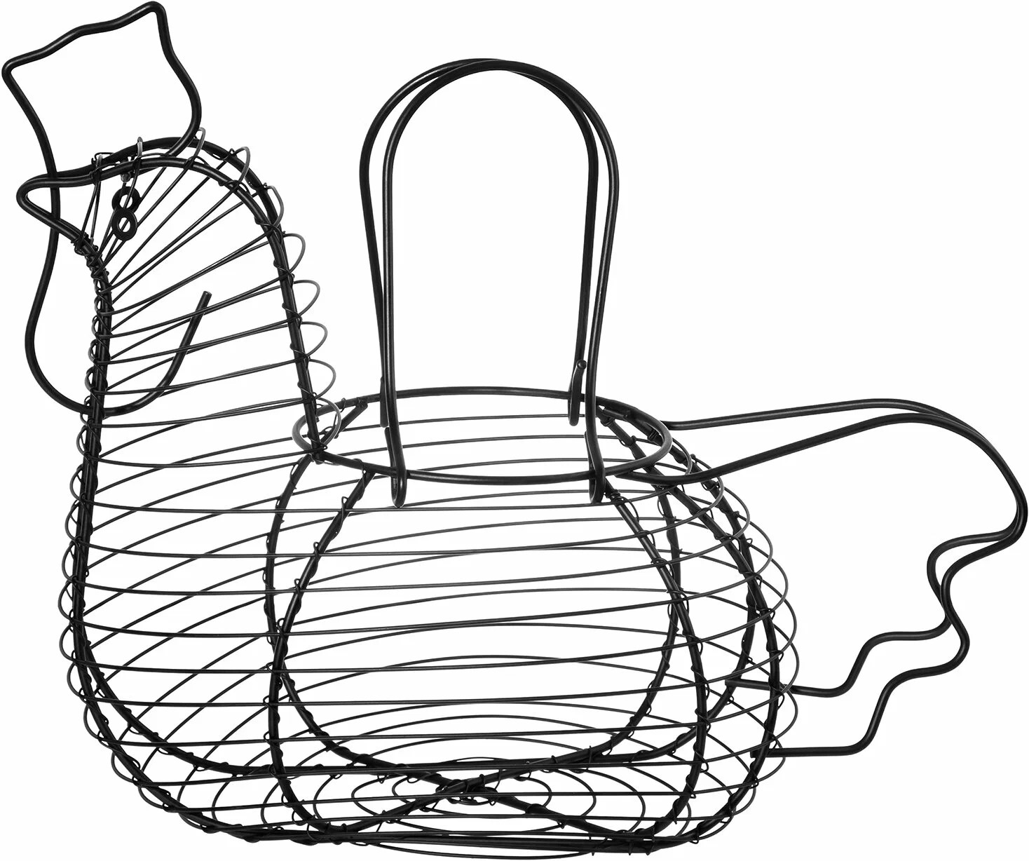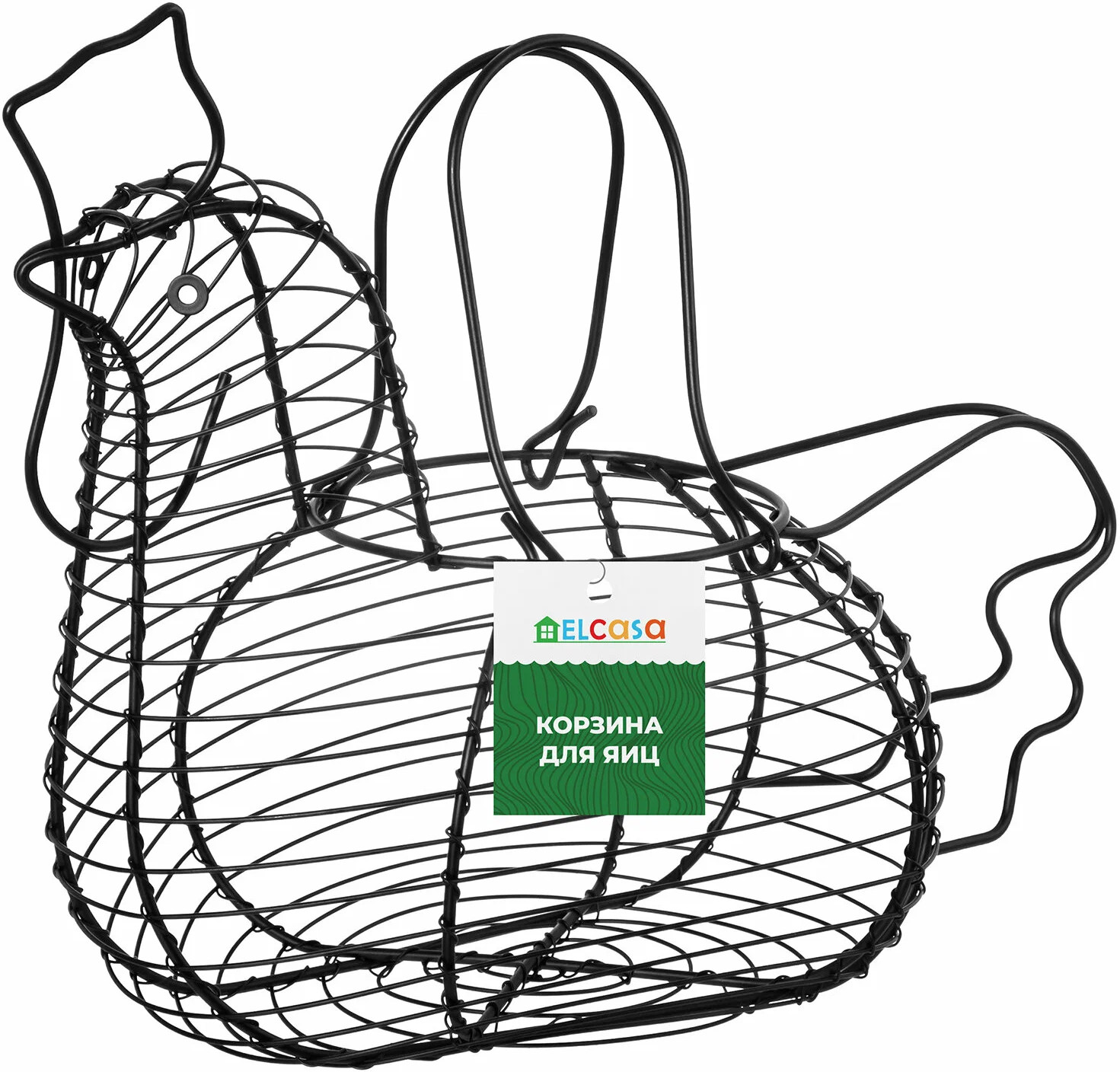 Корзина для яиц предназначена для организации хранения продуктов на вашей кухне. Чёрная плетёная корзинка в виде курочки выполнена из металла. Она послужит стильной альтернативой традиционным лоткам для яиц.