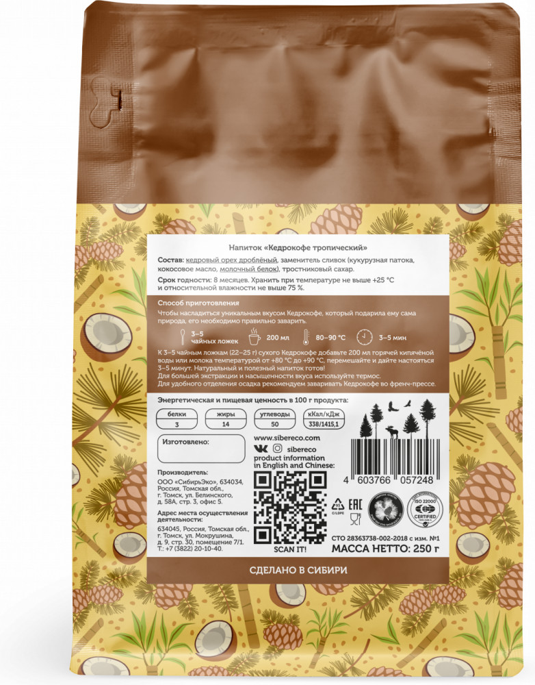 Сибереко Кедрокофе с кокосовыми сливками и тростниковым сахаром «Тропический»