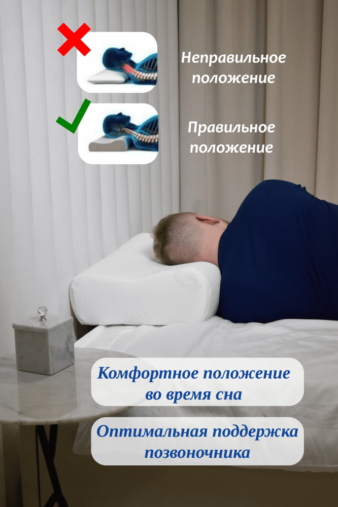 Материал с эффектом памяти мягко и бережно адаптируется под контуры головы и шеи, создавая ощущение индивидуального комфорта. Подушка имеет жесткую структуру, что обеспечивает надежную и стабильную поддержку во время сна. Размер 60×40 см идеально подходит для большинства наволочек. Подарите себе здоровый сон с ортопедической подушкой "Будет Сон"!