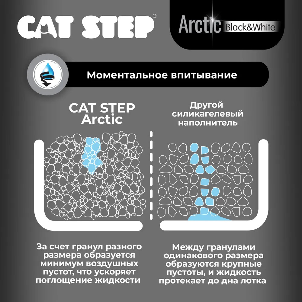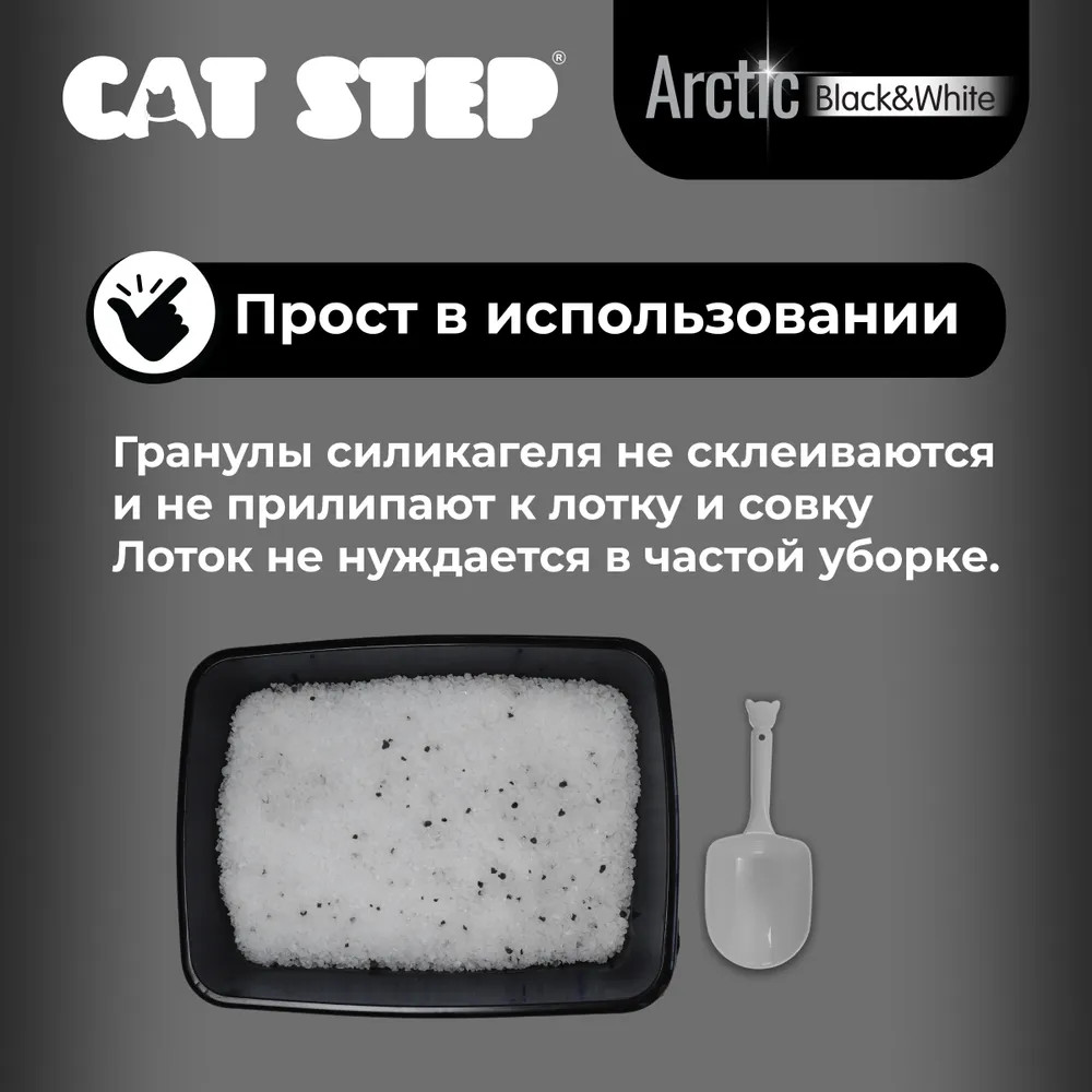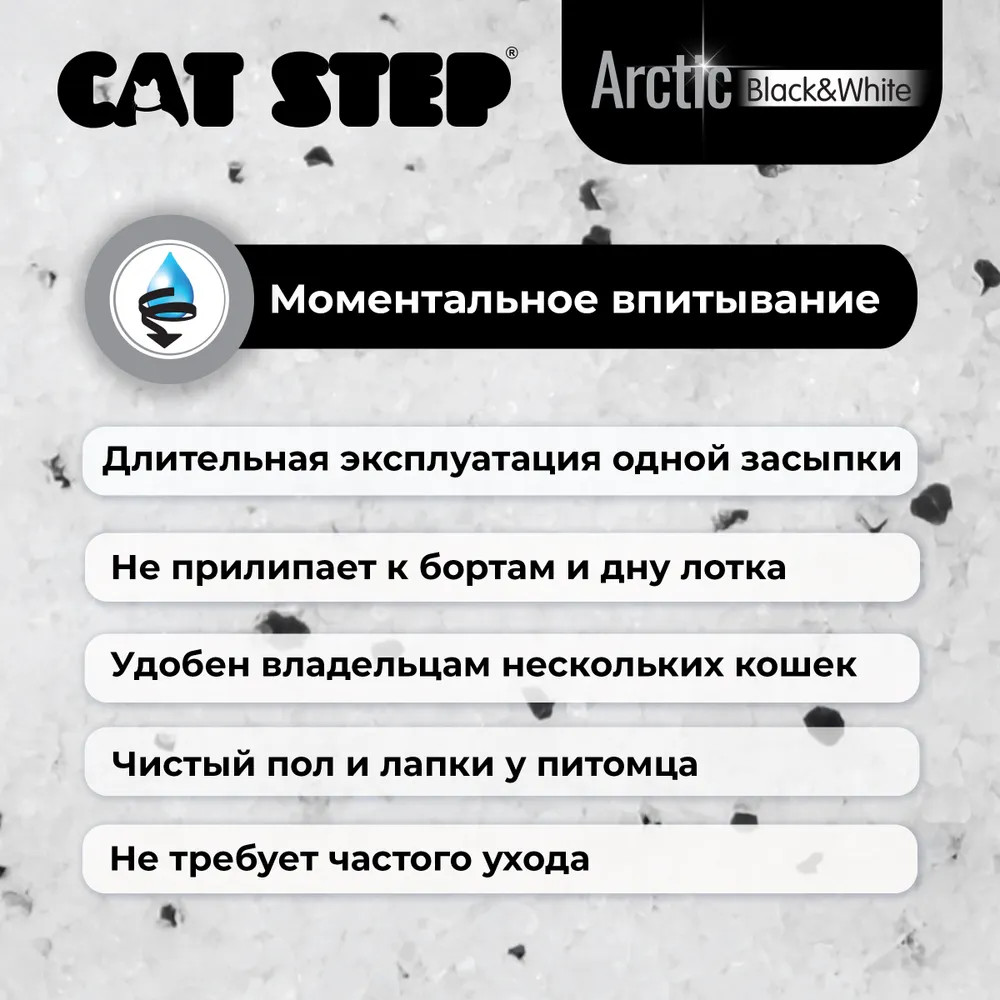 Cat Step Наполнитель для кошачьего туалета впитывающий силикагелевый «Black&White»
