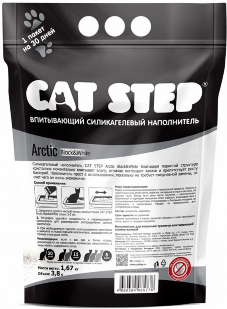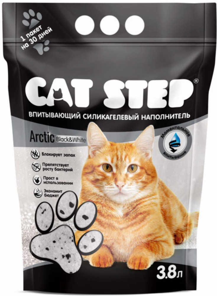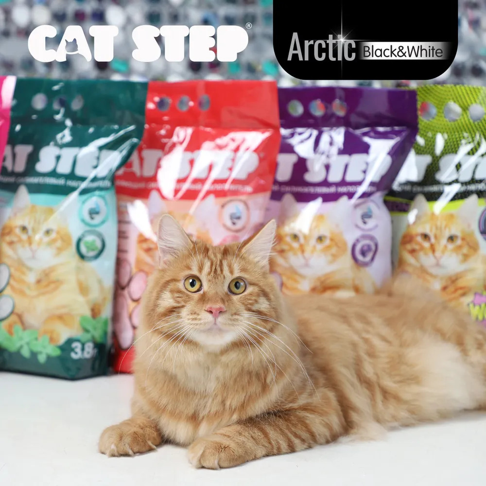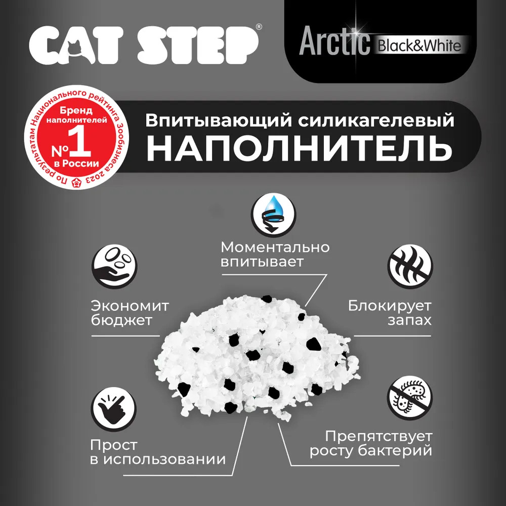 Cat Step Наполнитель для кошачьего туалета впитывающий силикагелевый «Black&White»