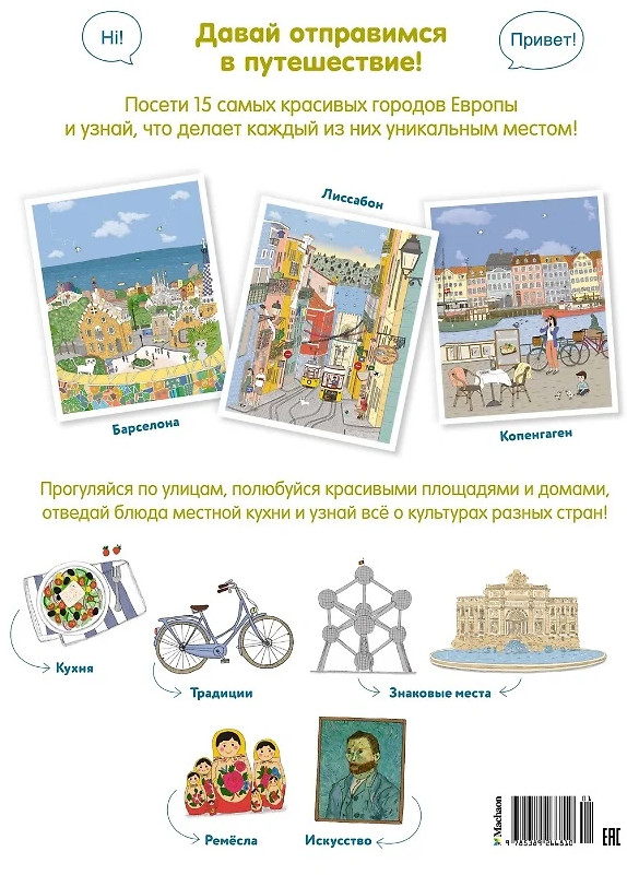 💳 Оплатить за товар можно при получении 🇰🇿 Есть бесплатная доставка по Казахстану от 1 дня 🎁 Копите бонусы с каждой покупки Серия: Путешествие вокруг света Давай отправимся в путешествие! Посети 15 самых красивых городов Европы и узнай, что делает каждый из них уникальным местом! Прогуляйся по улицам, полюбуйся красивыми площадями и домами, отведай местную кухню и узнай всё о культурах разных стран! |