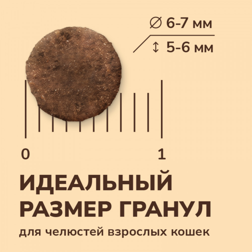 размер гранул очень маленький. Больше подойдёт для котят, на упаковке написано 80% животного протеина, а по факту 59% всего, включая рыбу. И слишком много овощей. Это большой минус.