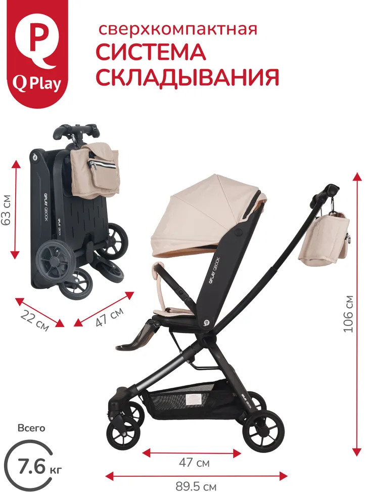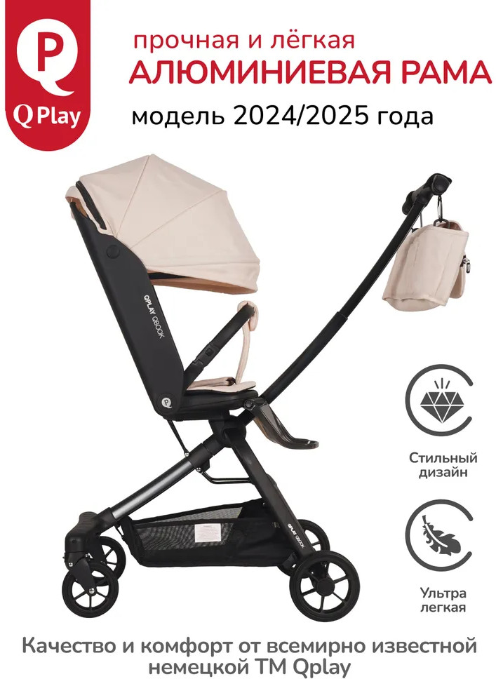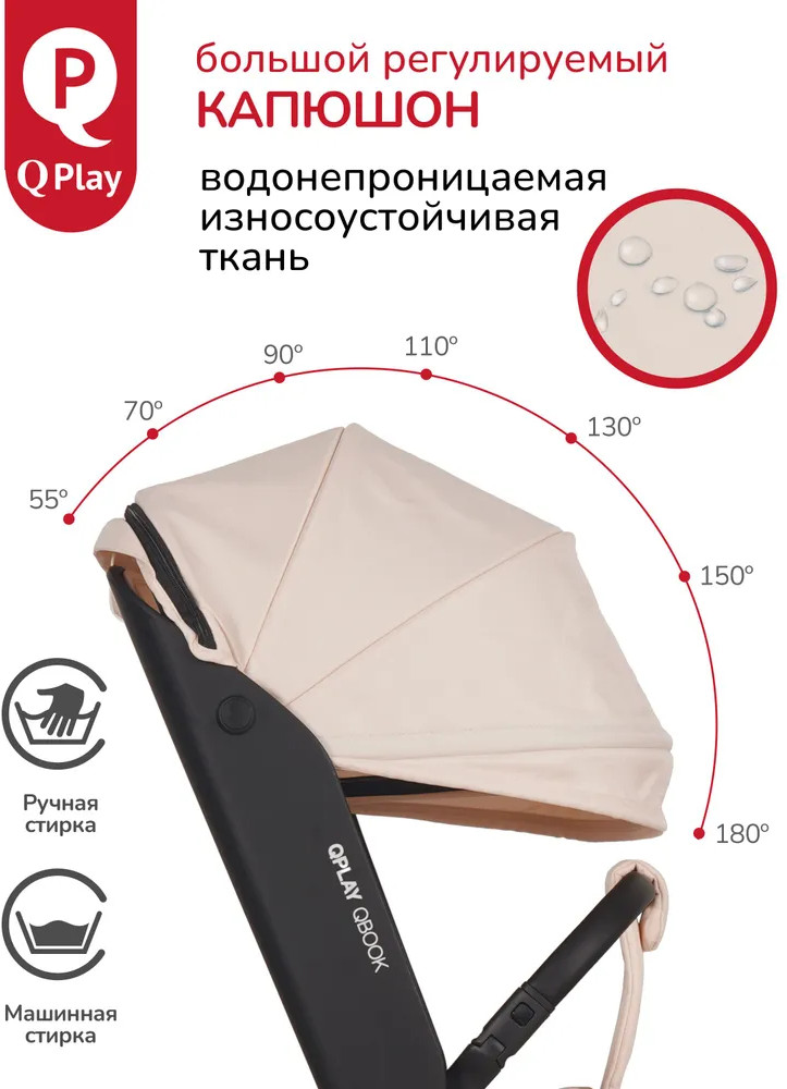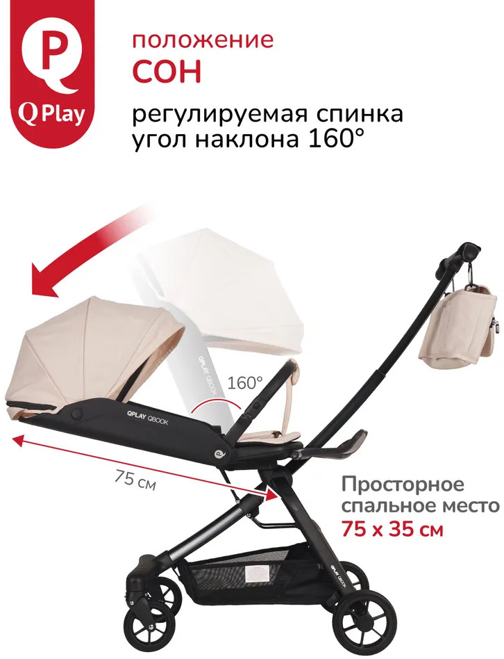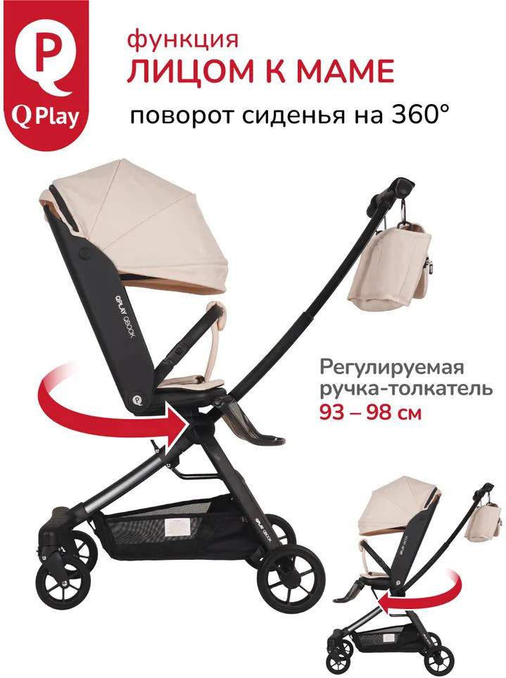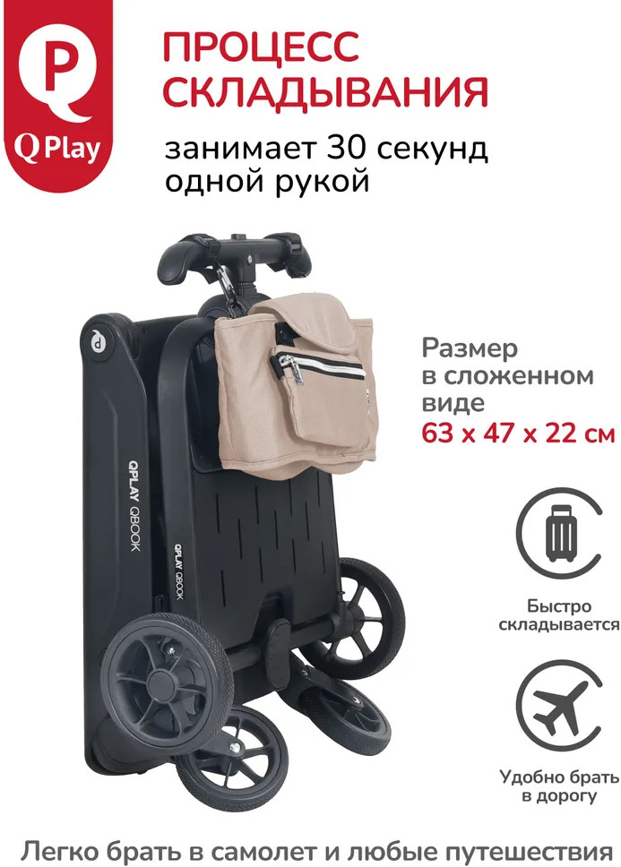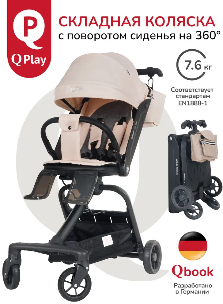 Детская складная коляска премиум-класса «Qbook» 360° от всемирно известной немецкой ТМ Qplay сочетает современный дизайн, многофункциональность и повышенный комфорт во время использования. Коляска произведена по стандартам EN1888-1 из современных материалов, что гарантирует высокую надёжность и полную безопасность для ребёнка. Благодаря поворотному сиденью, малыш может совершать прогулку не только глядя вперёд, но и лицом к родителю. Многопозиционная откидывающаяся спинка обеспечивает детям максимальный комфорт. Диапазон регулировки спинки 50° до положения «сон» (угол наклона 160°). Коляска «Qbook» с компактной складной рамой после складывания превращается в чемодан, что очень удобно для хранения и транспортировки. Ее можно поместить в багажник и отправиться с ребёнком в торговый центр и на прогулку или взять с собой в самолёт. Размер в сложенном виде всего 63×47×22 см.