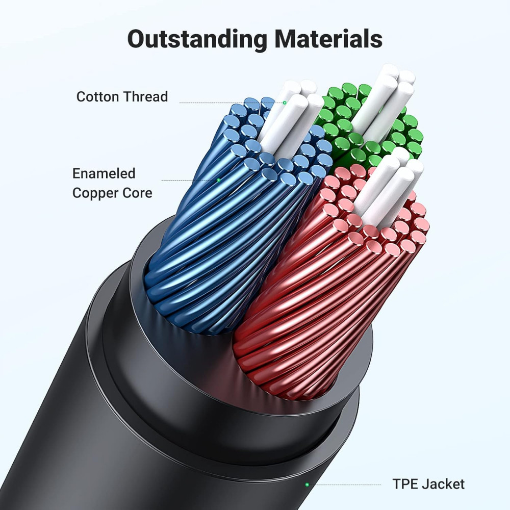 Премиальная оболочка TPE: премиальная оболочка TPE и круглая форма делают кабель более гибким и не спутываются.