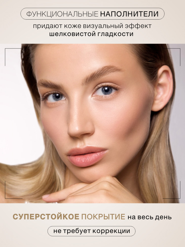 Лёгкое покрытие, особо не скроет, но общий вид делает свежим. Не забивается, не подчёркивает мелкие морщинки. Можно распределить пальцами.