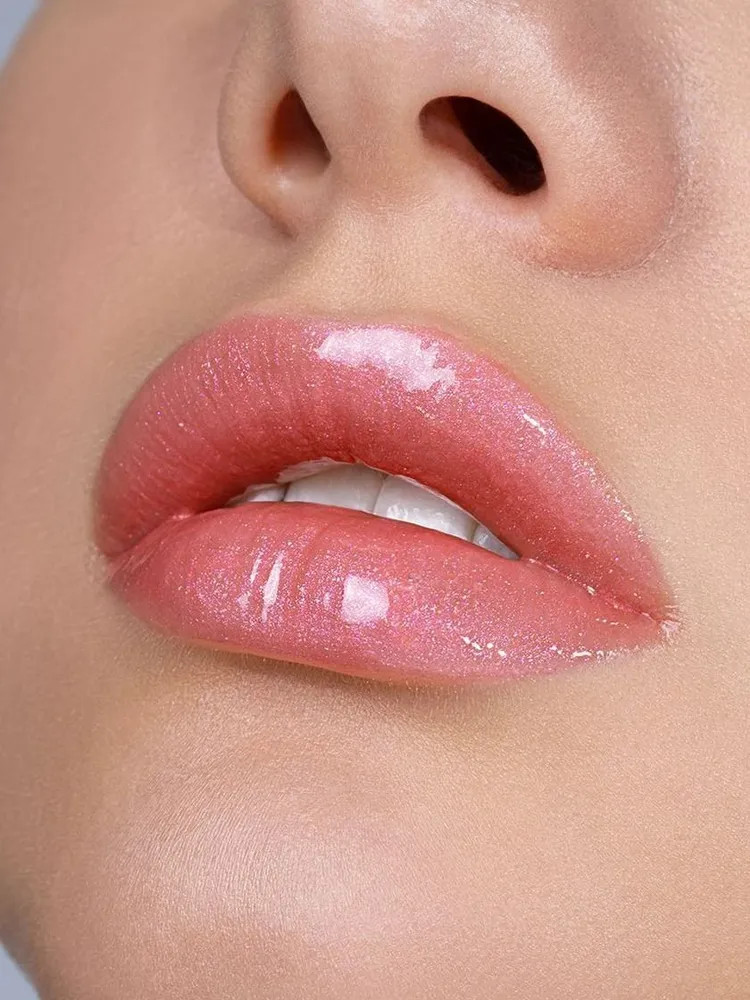 Удобный аппликатор Вкусный запах Красивый и насыщенный цвет с мелкими блёстками Не очень липкий