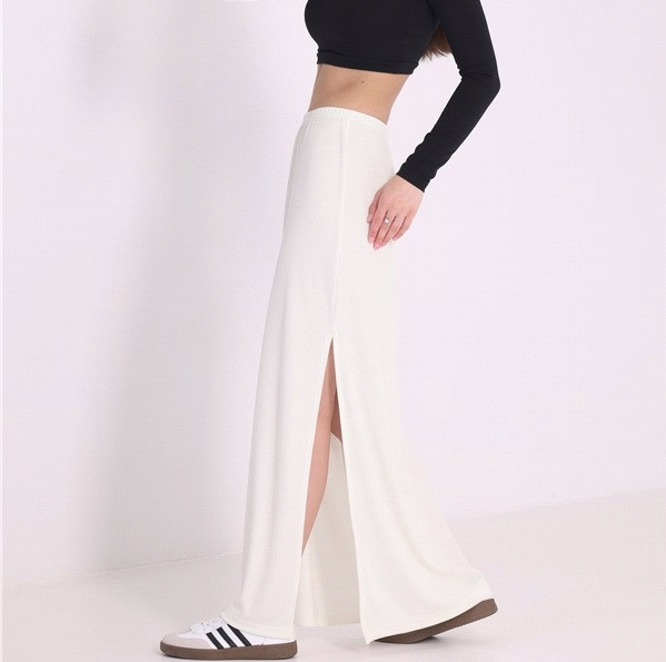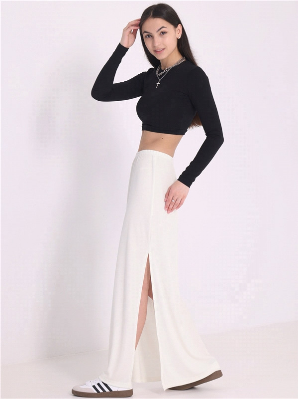 С первого взгляда не понравилась, но теперь не вылажу из неё - с кедами круто, ткань очень приятная, красиво двигается при ходьбе, удобна. на рост 160 в пол. если рост выше, можно спускать на бедра. требует бесшовное бельё. не просвечивает.