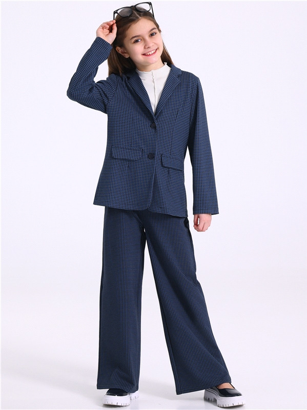 Жакет для девочки из плотного полотна с рельефным рисунком, выполненным с применением жаккардового плетения. Изделие полуприлегающего силуэта с длинными рукавами, с застежкой на пуговицы и шлицей по спинке. Линия талии подчеркнута вытачками. Классический отложной воротник. Отличный вариант для школы!