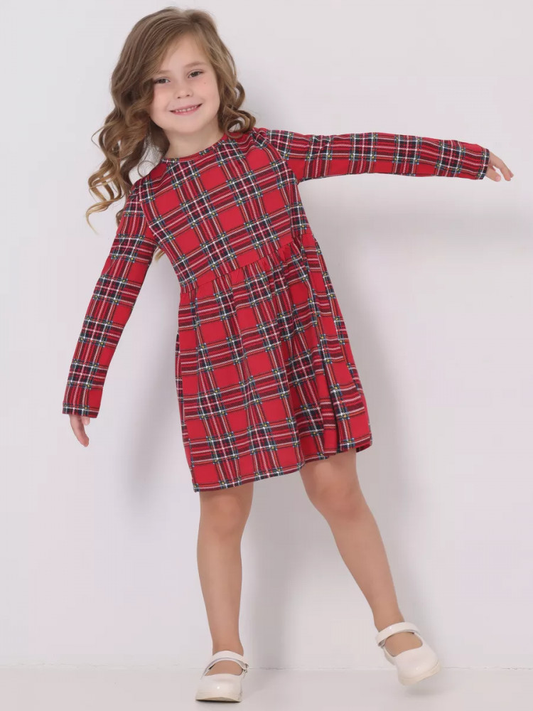 Платье для девочки выполнено из кулира — лёгкого хлопкового полотна. Изделие с длинными рукавами и с присборенной по талии юбочкой, застежка на пуговицу по спинке. Отличный наряд для маленьких принцесс!