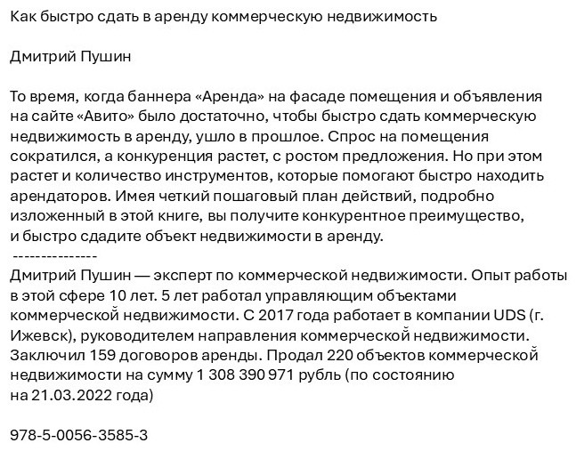 Как быстро сдать в аренду коммерческую недвижимостьВ данный момент этот товар отсутствует в продаже. Возможно, у нас найдется аналогичный или похожий товар здесь. То время, когда баннера «Аренда» на фасаде помещения и объявления на сайте «Авито» было достаточно, чтобы быстро сдать коммерческую недвижимость в аренду, ушло в прошлое. |