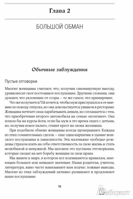 В данный момент этот товар отсутствует в продаже. Возможно, у нас найдется аналогичный или похожий товар здесь. Женщинам с раннего детства внушают, что они должны быть «хорошими». Их главное предназначение в жизни — быть хорошей матерью и женой. Со всем остальным справятся мужчины. И женщины, сами того не осознавая, становятся зависимыми. Они отказываются от своих истинных желаний и устремлений в угоду интересов своих близких.