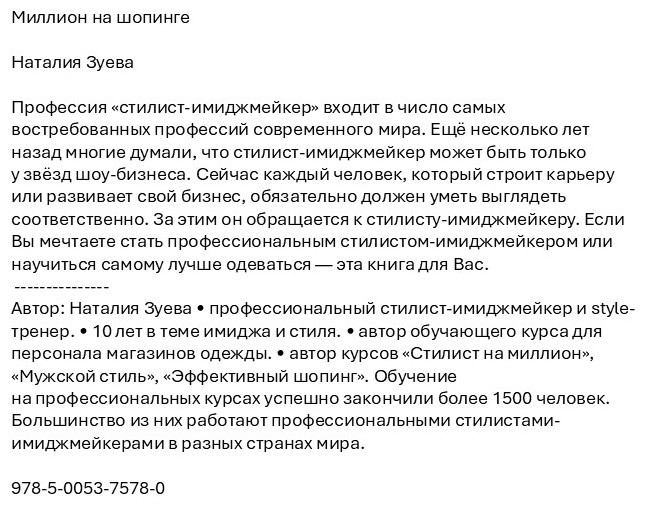 Миллион на шопингеВ данный момент этот товар отсутствует в продаже. Возможно, у нас найдется аналогичный или похожий товар здесь. Деловая литература — это жанр, охватывающий книги, направленные на развитие профессиональных навыков, личной эффективности и предпринимательского мышления. В таких книгах рассматриваются темы управления, лидерства, финансов, маркетинга, продаж, тайм-менеджмента и самореализации. Они помогают читателям лучше понимать законы бизнеса, осваивать стратегии успеха и применять их в реальной жизни. Автор: Наталия Зуева. |
