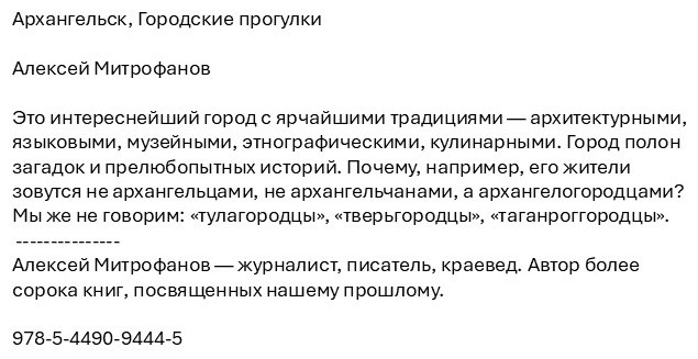 Архангельск. Городские прогулкиВ данный момент этот товар отсутствует в продаже. Возможно, у нас найдется аналогичный или похожий товар здесь. Книги о туризме — это увлекательные путеводители по миру, открывающие перед читателями разнообразные маршруты, уникальные природные уголки, культурные достопримечательности и традиции разных народов. Они помогают спланировать путешествие, рассказывают о лучших местах для отдыха, делятся советами по безопасности, бюджетному туризму и особенностям местной кухни. Автор: Митрофанов А. |