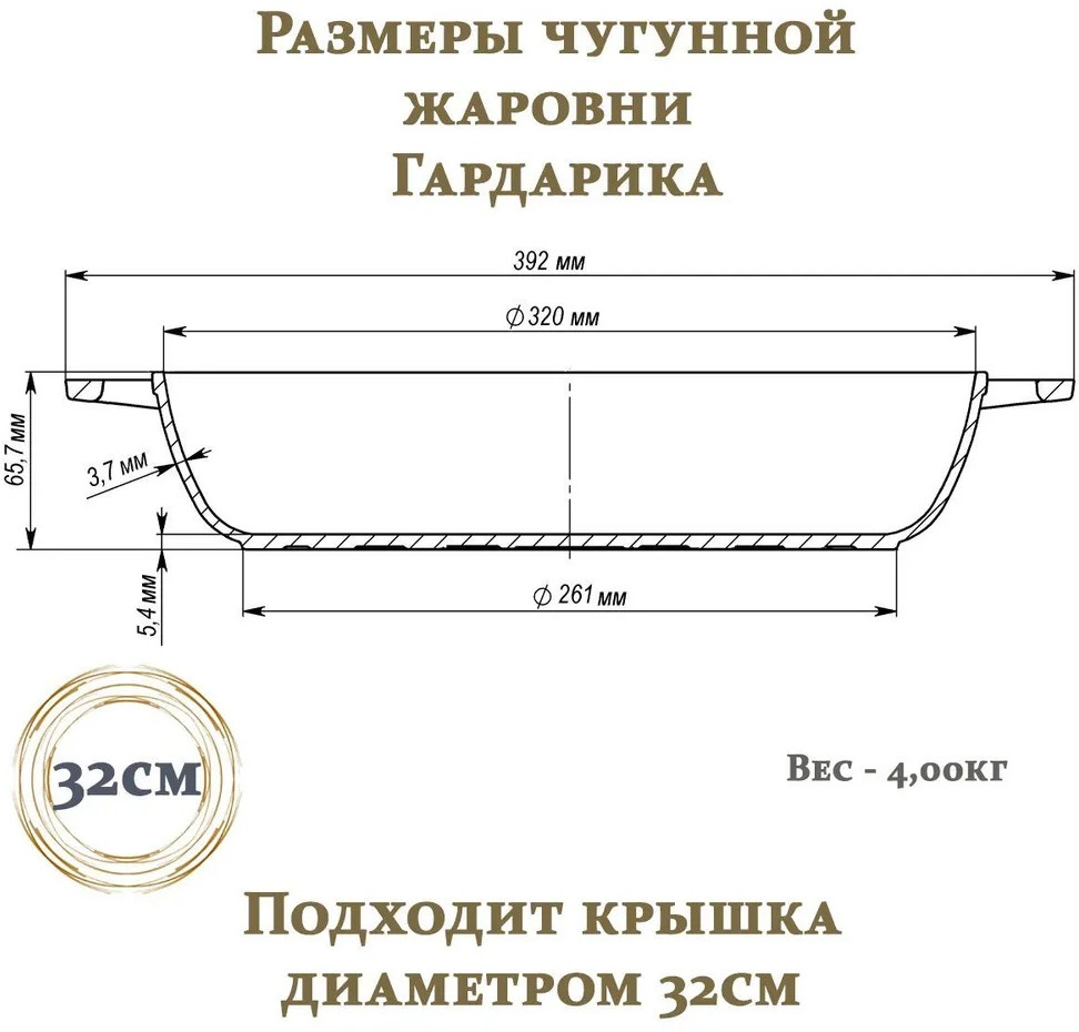 Хорошая чугунная жаровня, пришла хорошо упакованная, без повреждений. Супер! Рекомендую!
