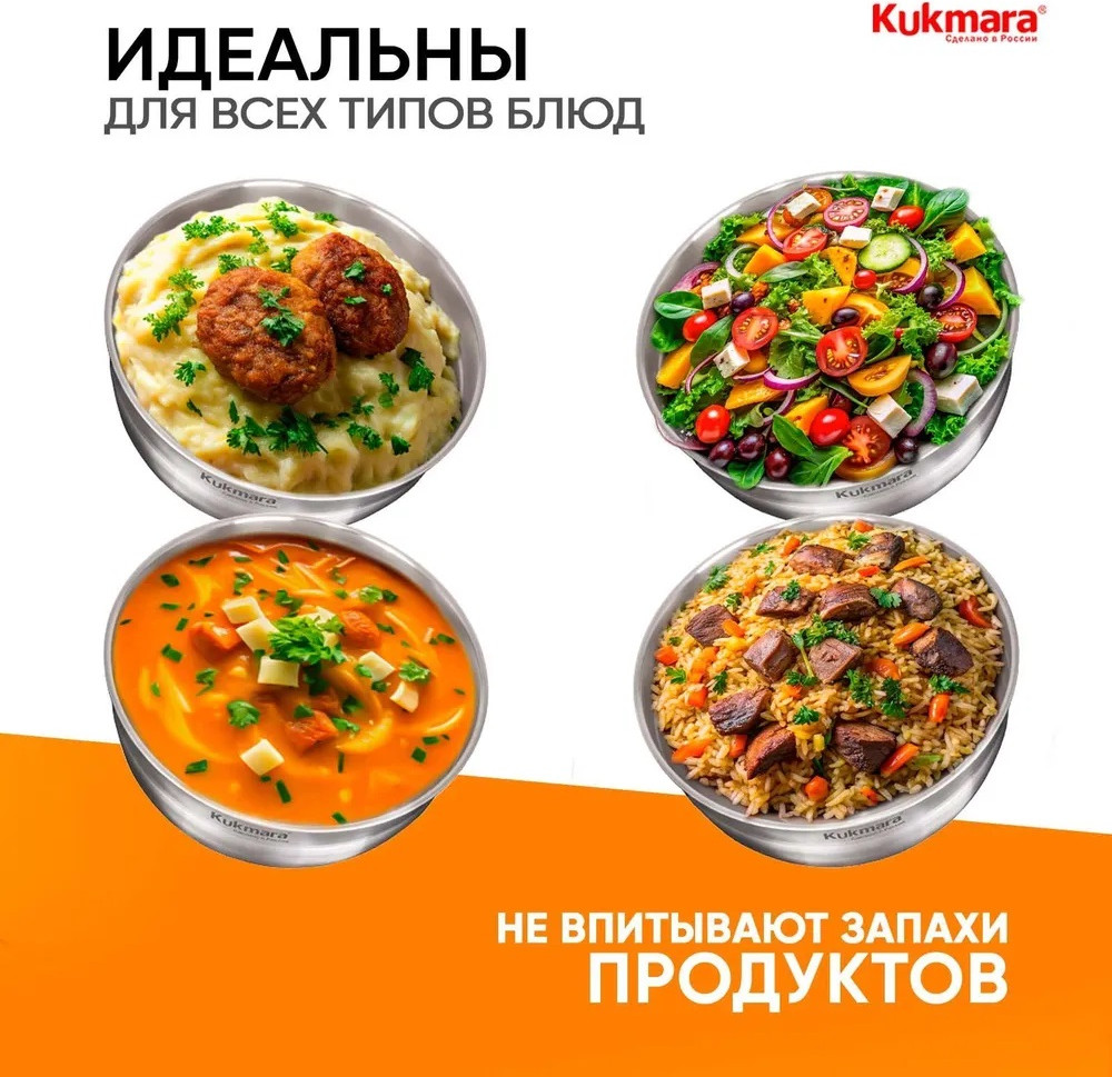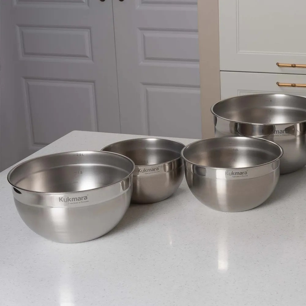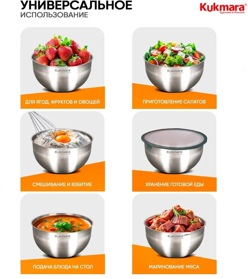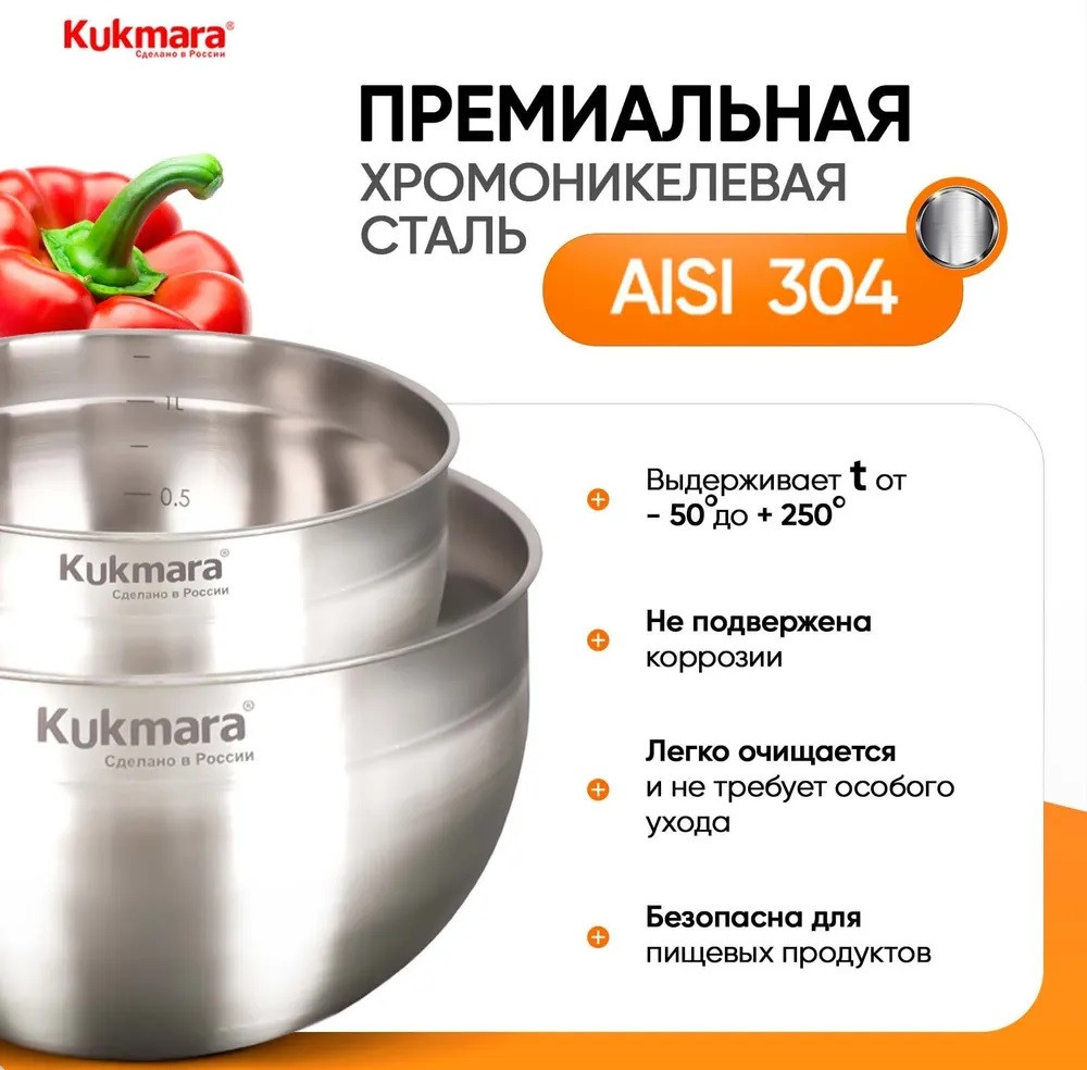 Обратите внимание, что миски не рекомендуется использовать в микроволновой печи, но для готовки и сервировки они подойдут идеально. Красивая посуда для кухни от марки Kukmara поможет Вам создать атмосферу уюта и вдохновения. Заказывайте сейчас и помогите своей кухне стать местом, где рождаются кулинарные шедевры! Подарите себе и своей семье удобство, стиль и качество, которые предлагает посуда из нержавеющей стали.