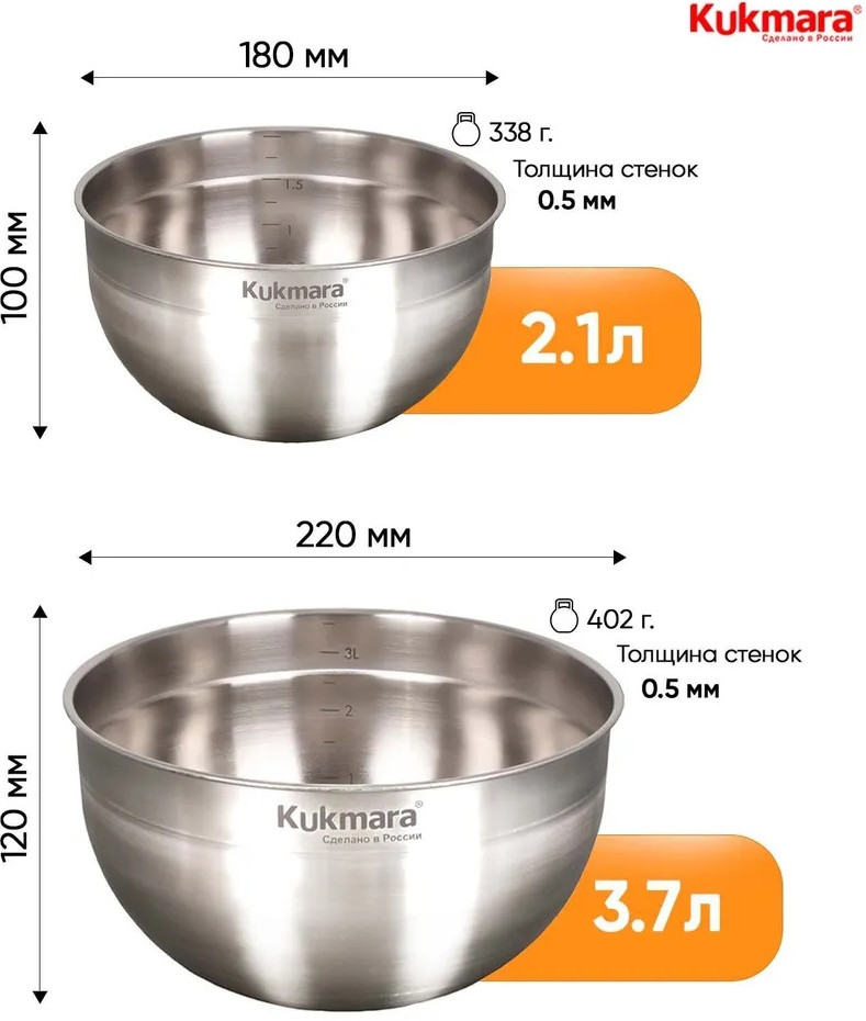 Обратите внимание, что миски не рекомендуется использовать в микроволновой печи, но для готовки и сервировки они подойдут идеально. Красивая посуда для кухни от марки Kukmara поможет Вам создать атмосферу уюта и вдохновения. Заказывайте сейчас и помогите своей кухне стать местом, где рождаются кулинарные шедевры! Подарите себе и своей семье удобство, стиль и качество, которые предлагает посуда из нержавеющей стали.