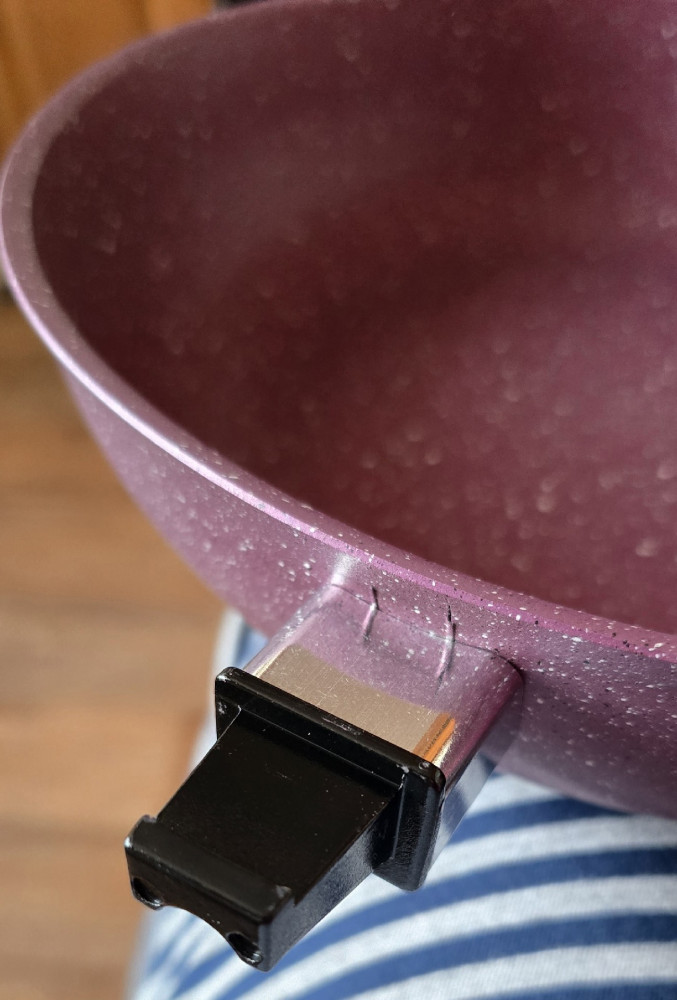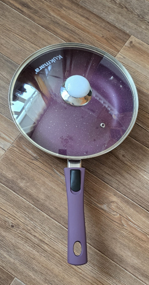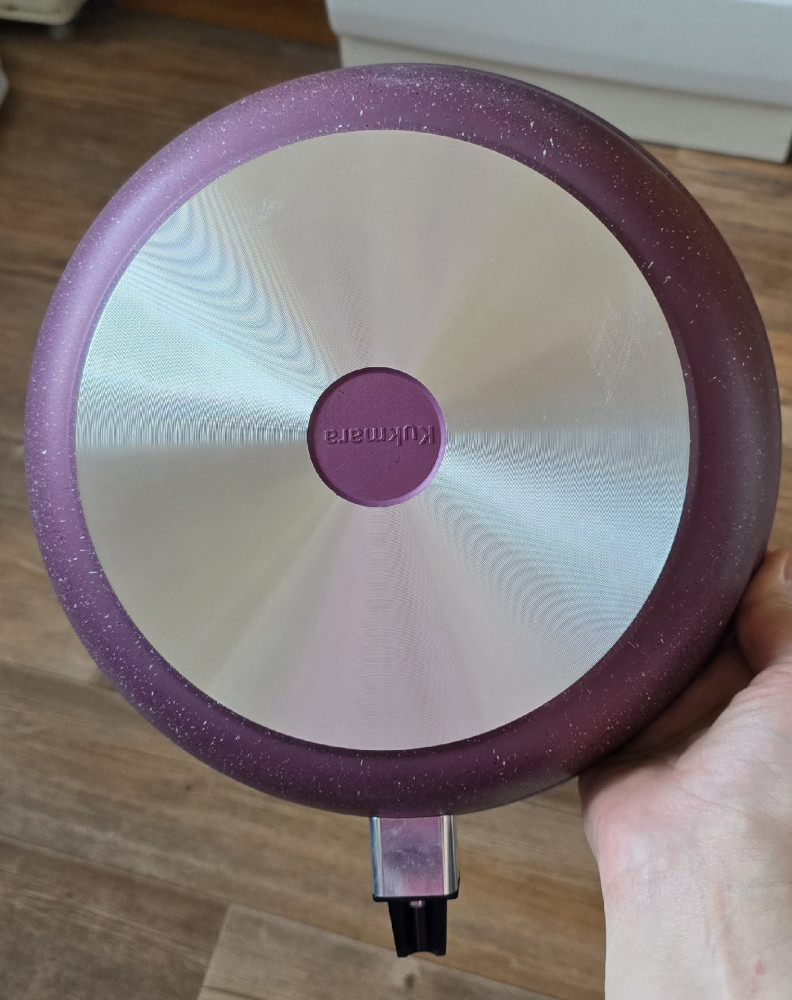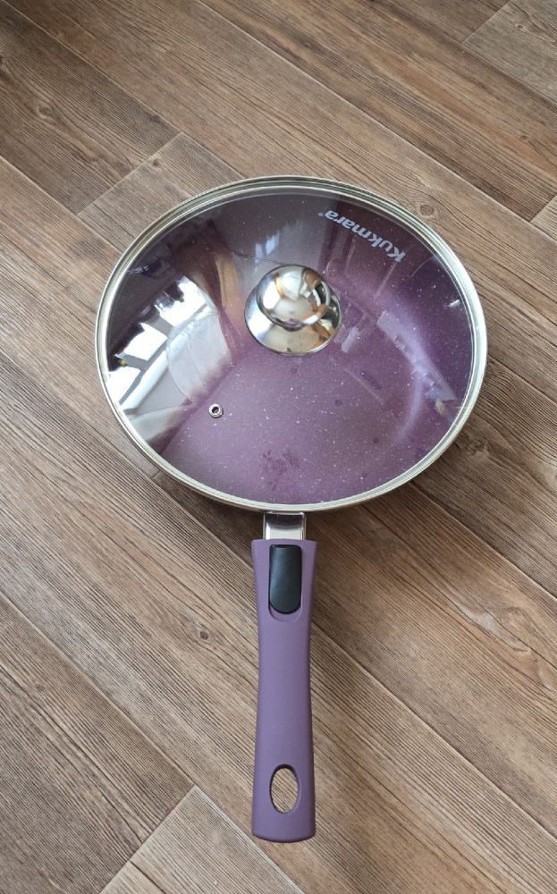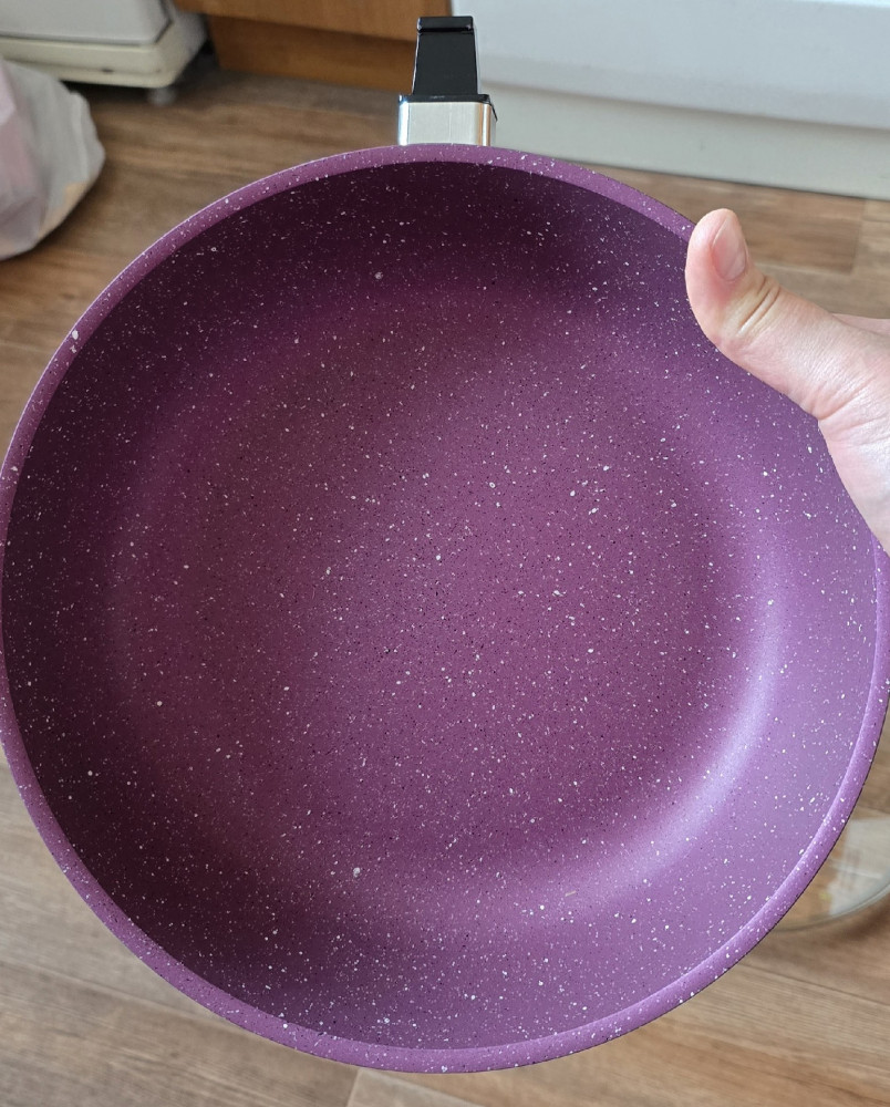 Отличная сковорода! Ничего не прилипает! Ручка снимается, удобно хранить в шкафу. Диаметр сковородки то что надо!
