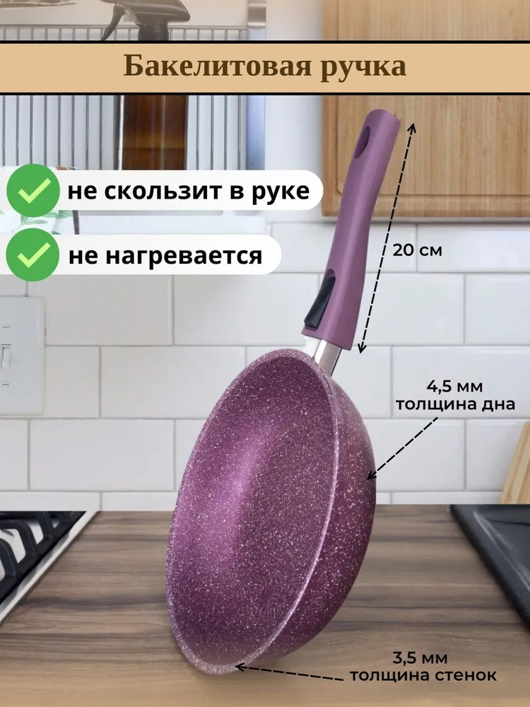 Отличная сковорода! Ничего не прилипает! Ручка снимается, удобно хранить в шкафу. Диаметр сковородки то что надо!