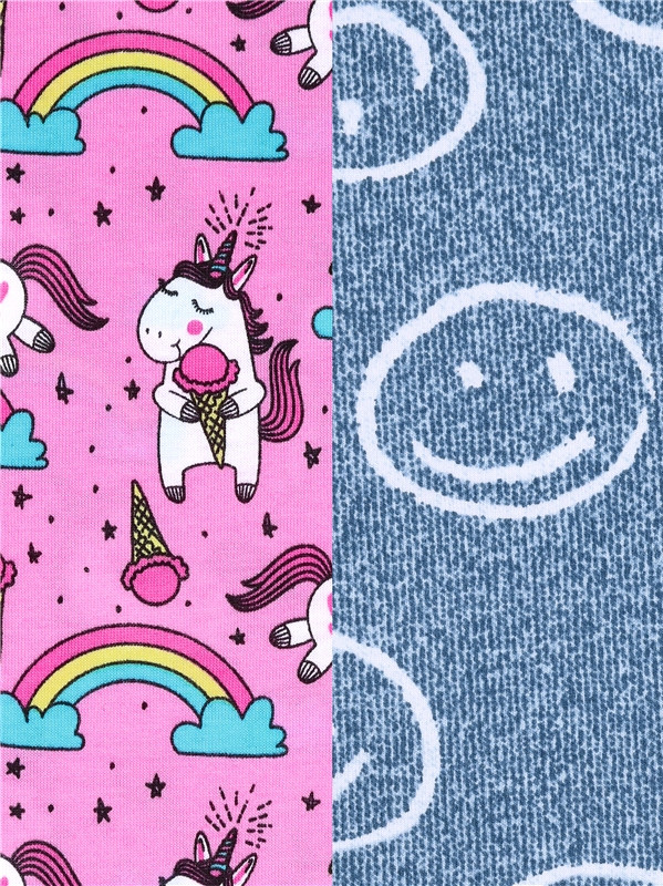 Название цвета: единороги на ярко-розовом + смайлики на джинсе