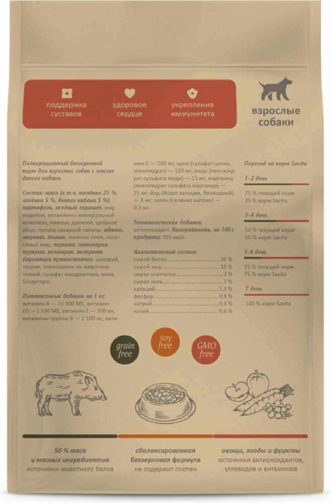 Savita Корм для собак беззерновой с мясом дикого кабана «Wild Boar»