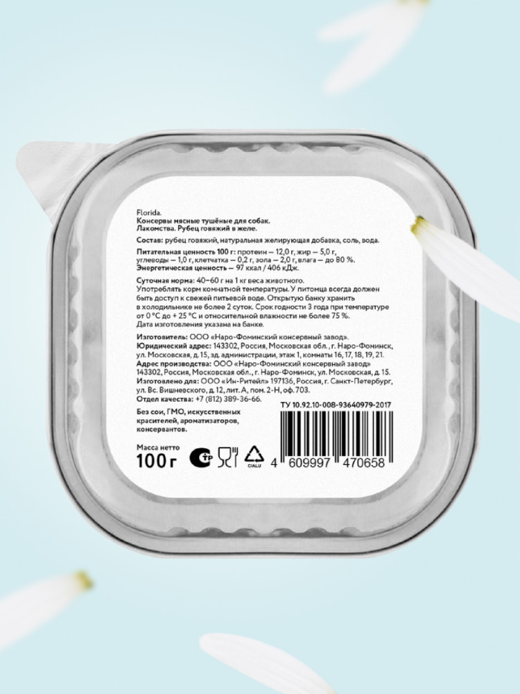 Florida Лакомство для собак натуральное «Рубец говяжий в желе»