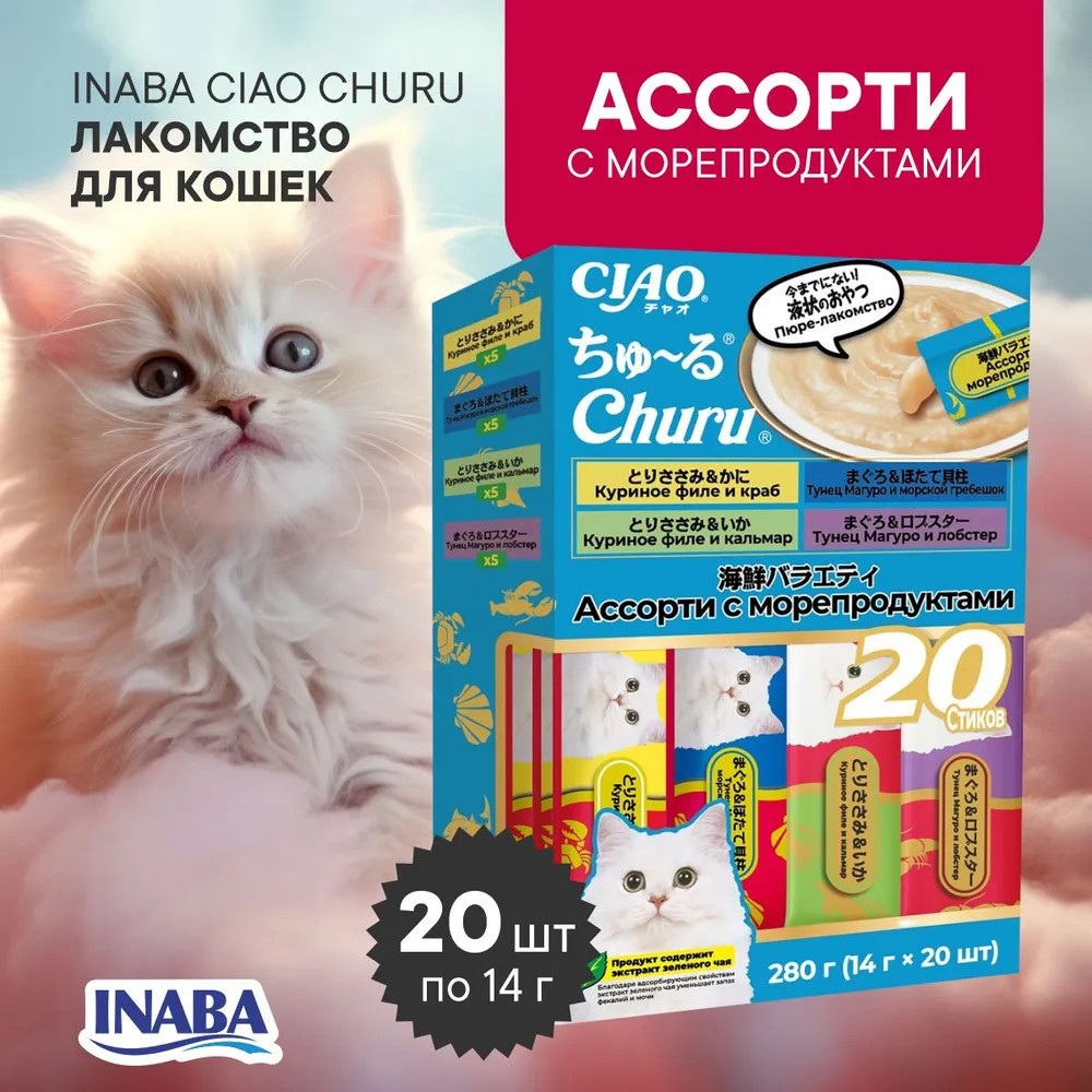 Inaba Набор лакомств-пюре для кошек с морепродуктами Чао Чуру «Ассорти Ciao Churu Big»-25% +106