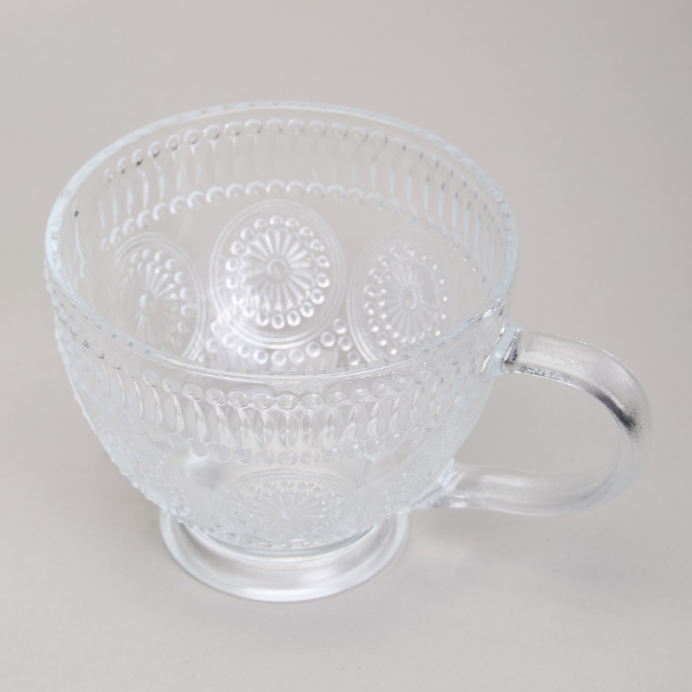 Объем в 270 мл делает её универсальной для различных напитков — от ароматного кофе и чая до освежающих коктейлей, и соков. Прозрачное стекло позволяет насладиться не только вкусом, но и красотой напитка, подчеркивая его насыщенные цвета и текстуры. Узоры на поверхности добавляют визуальное разнообразие, создавая уникальную эстетическую атмосферу.