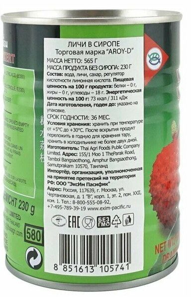 Aroy-D Личи в сиропе-25% +110