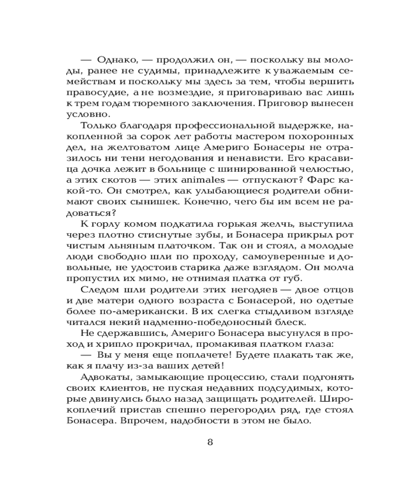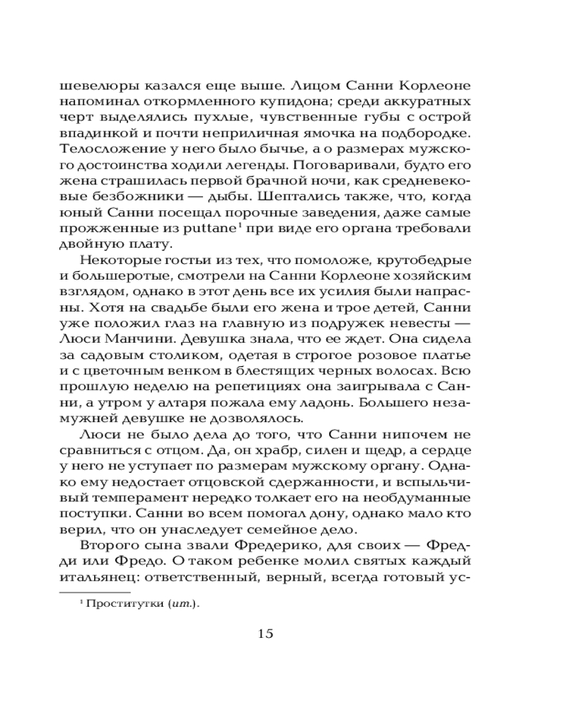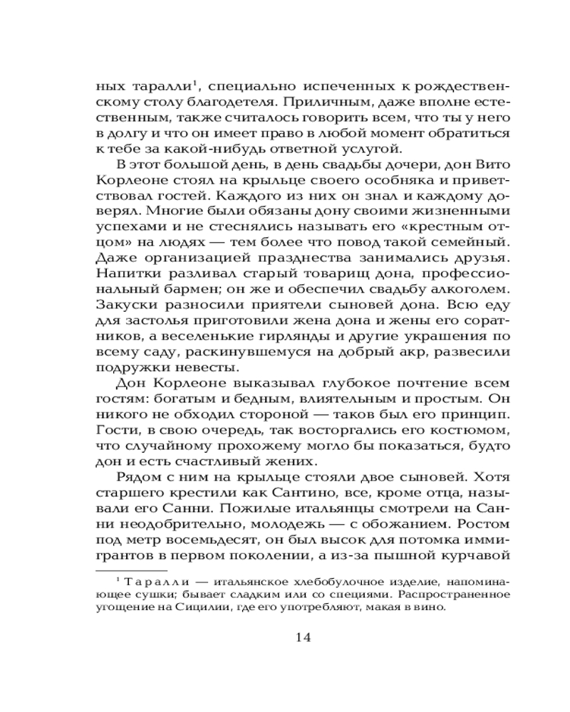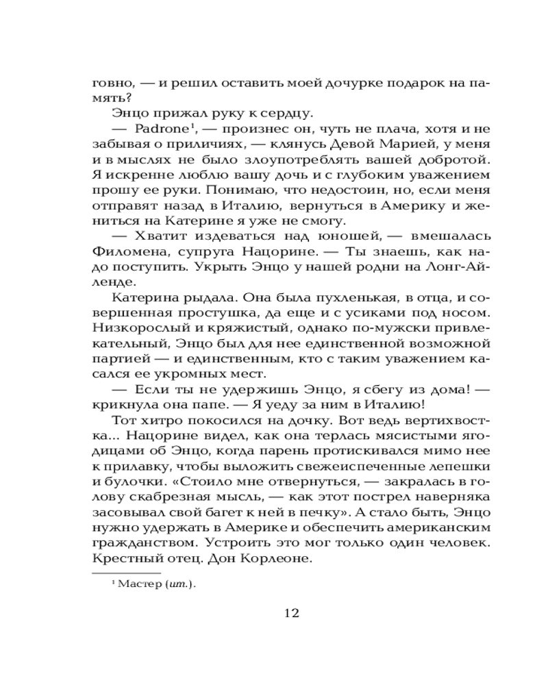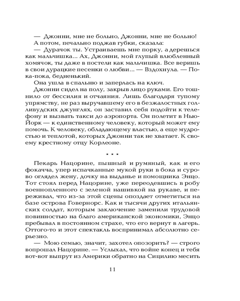 💳 Оплатить за товар можно при получении 🇰🇿 Есть бесплатная доставка по Казахстану от 1 дня 🎁 Копите бонусы с каждой покупки Серия: Жемчужина. Классика тихой роскоши Каждая книга серии — это литературная жемчужина. Марио Пьюзо вошел в историю мировой литературы благодаря роману «Крестный отец». Сюжетом книги заинтересовались кинематографисты. Пьюзо написал сценарий, а Фрэнсис Форд Коппола снял фильм с Марлоном Брандо и Аль Пачино в главных ролях. Корлеоне — один из могущественнейших кланов Америки. Подпольная империя управляется членами семьи. Только младший сын дона Корлеоне, Майкл, идет наперекор отцу. Он хочет спокойно жить со своей возлюбленной и не иметь ничего общего с мафией. Однако не так просто отдалиться от семейных дел, если ты Корлеоне. Майкл оказывается втянут в войну между кланами. У него только два пути: стать пешкой в руках врагов или преступить через себя и стать убийцей... |