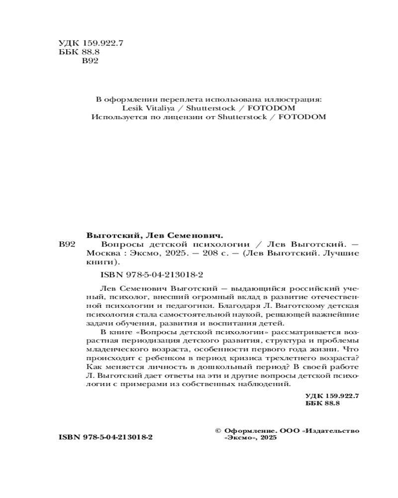 💳 Оплатить за товар можно при получении 🇰🇿 Есть бесплатная доставка по Казахстану от 1 дня 🎁 Копите бонусы с каждой покупки Серия: Лев Выготский. Лучшие книги Лев Семенович Выготский — выдающий советский психолог, внесший огромный вклад в развитие отечественной педагогической науки и психологии. Сегодня в сознании ученых России и зарубежных стран Л. Выготский — крупнейший теоретик и методолог ряда психологических отраслей знаний. Книга «Вопросы детской психологии», наравне с другими его работами, легла в основу образовательных программ для педагогов и психологов по всему миру. Сформулированные Л. Выготским принципы воспитания в начале XX века актуальны до сих пор. Книга «Вопросы детской психологии» рекомендована студентам педагогических и психологических специальностей, родителям и всем интересующимся вопросами детской психологии. |