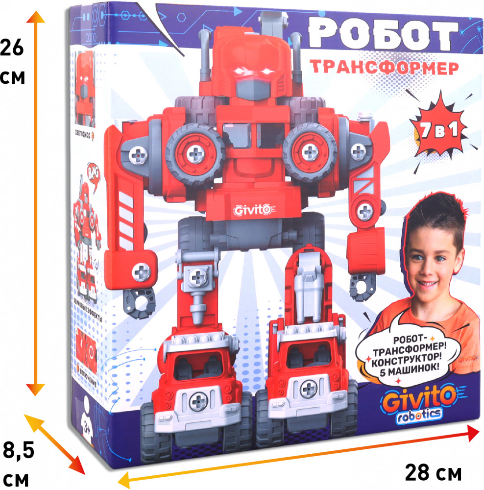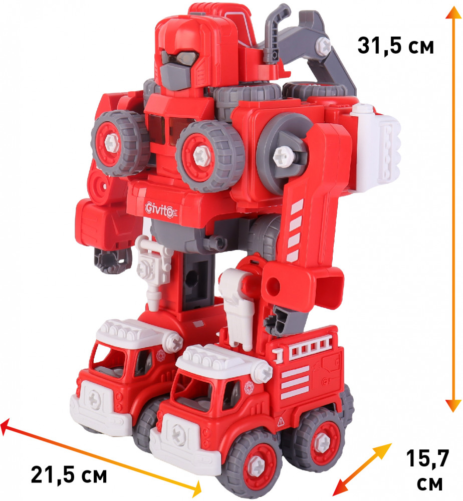 Givito Интерактивный робот-трансформер «Пожарный»В данный момент этот товар отсутствует в продаже. Возможно, у нас найдется аналогичный или похожий товар здесь. Серия: Robotics Робот-трансформер, который собирается из пяти машинок специального назначения: экскаватора, пожарной машины, эвакуатора, грузовика с лестницей и автоцистерны для воды. Сюжетный конструктор состоит из 130 деталей. Интерактивная игрушка оснащена подсветкой (светящиеся глаза) и звуковыми эффектами робота. В комплект входят 130 деталей для сборки машинок и робота, инструкция, 3 батарейки AG13/LR44, отвертка для сборки и стильная подарочная упаковка. Размер упаковки: 28×26×8,3 см. |