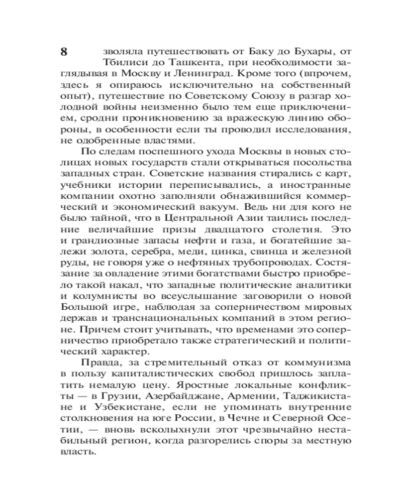 Серия: Эксклюзивная классика В своем фундаментальном исследовании «Большая игра» Питер Хопкирк описывает двухвековое (от эпохи Петра I до Николая II) противостояние между Англией и Россией в Центральной Азии и анализирует их геополитические цели на этой огромной территории. Талантливый рассказчик Хопкирк увлекательно описывает масштабные исторические события, освещает острейшую явную (и тайную) борьбу за территории, влияние и рынки. Обстоятельно рассказывает историю проникновения русских в Среднюю Азию и последовательного покорения владений эмиров и ханов — Ташкента, Самарканда, Бухары, Хивы, Коканда, Геок-Тепе, Мерва. В ярких красках описывает удивительные и драматические приключения выдающихся участников Большой игры. |