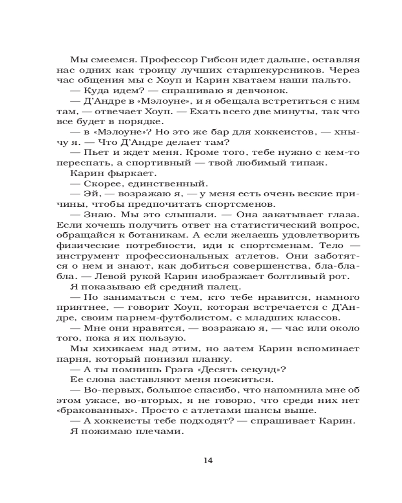 💳 Оплатить за товар можно при получении 🇰🇿 Есть бесплатная доставка по Казахстану от 1 дня 🎁 Копите бонусы с каждой покупки Серия: Хиты Эль Кеннеди Студентка-старшекурсница Сабрина Джеймс спланировала свою жизнь заранее: учеба в колледже, поступление на юридический факультет университета, престижная работа. И в этой жизни точно нет места романтичному хоккеисту, который верит в любовь с первого взгляда. Сабрина проводит с Джоном Такером одну ни к чему не обязывающую ночь, даже не предполагая, что она изменит ее жизнь. Но правила игры меняются. |
