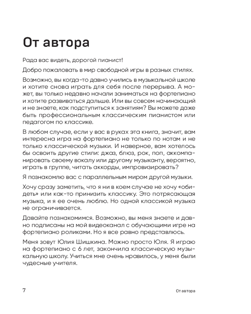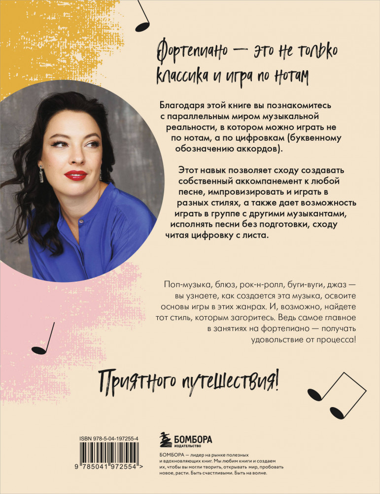 💳 Оплатить за товар можно при получении 🇰🇿 Есть бесплатная доставка по Казахстану от 1 дня 🎁 Копите бонусы с каждой покупки Серия: Музыкальная академия на дому. Пошаговые самоучители Фортепиано — это не только классика и игра по нотам. Благодаря книге Юлии Шишкиной вы познакомитесь с миром, параллельным привычной музыкальной реальности. В нем можно играть не только по нотам, но и по цифровкам (буквенному обозначению аккордов), с ходу создавать собственный аккомпанемент к любой песне, импровизировать и играть в разных стилях. Этот уникальный навык позволяет творить на ходу, в реальном времени. Благодаря ему перед вами появится возможность играть в группе с другими музыкантами, исполнять песни без подготовки, с ходу читая цифровку с листа. Откройте для себя новый мир музыки и научитесь играть на фортепиано без нот! |