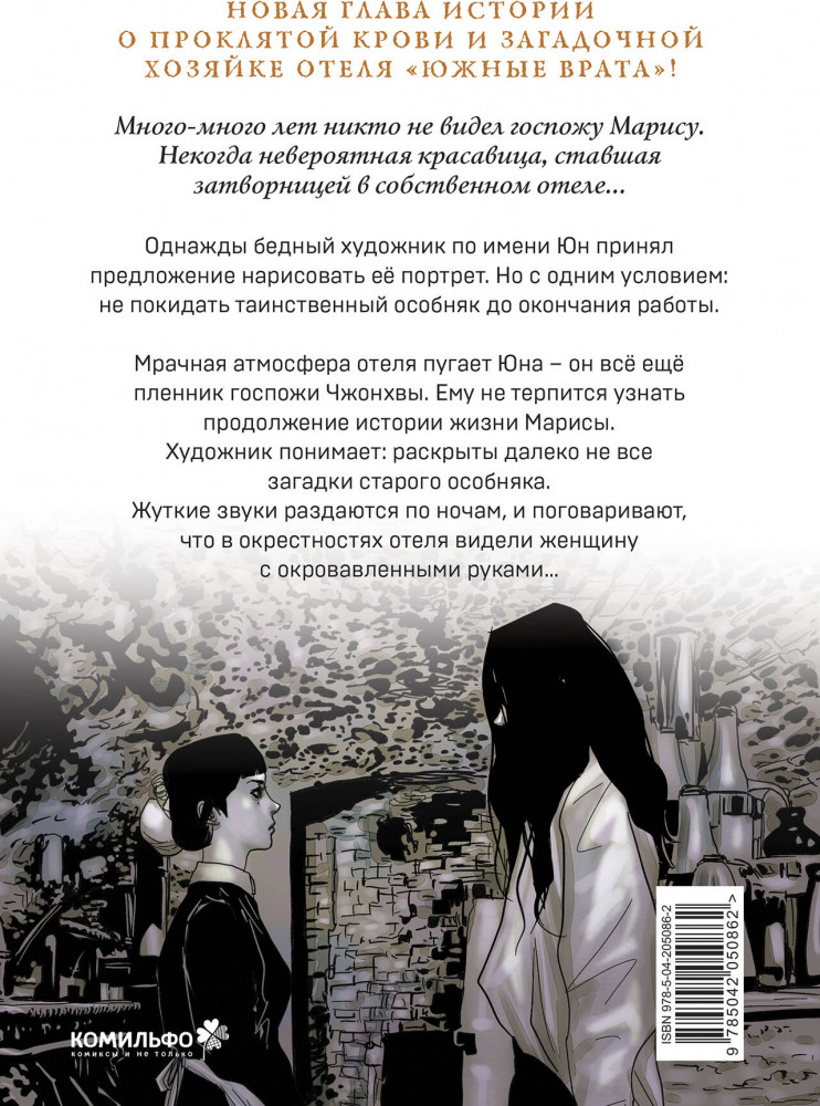 💳 Оплатить за товар можно при получении 🇰🇿 Есть бесплатная доставка по Казахстану 🎁 Копите бонусы с каждой покупки Серия: Комильфо. История о проклятой любви (вебтун) Мистика, романтика, детектив и жуткие семейные тайны в новой главе красивейшей манхвы! Мрачная атмосфера отеля «Южные врата» пугает Юна — он все еще пленник госпожи Чжонхвы. Ему не терпится узнать продолжение истории жизни Марисы — загадочной хозяйки отеля. Художник понимает: раскрыты далеко не все загадки старого особняка. Жуткие звуки раздаются по ночам, и поговаривают, что в окрестностях отеля видели женщину с окровавленными руками... |