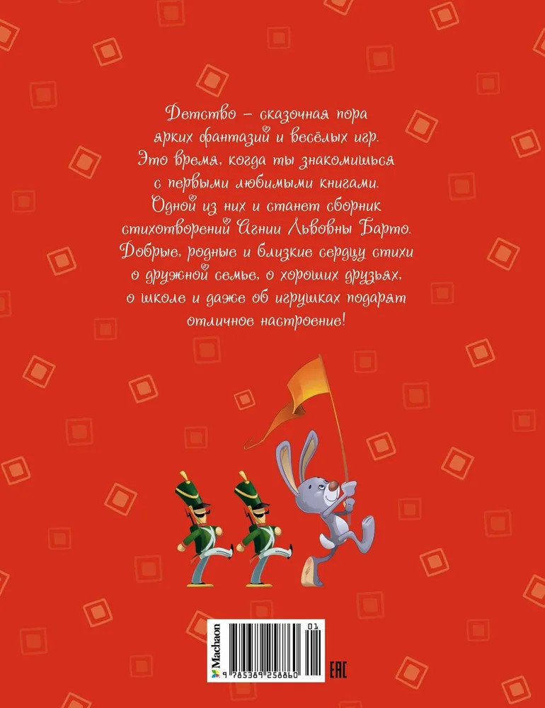 💳 Оплатить за товар можно при получении 🇰🇿 Есть бесплатная доставка по Казахстану от 1 дня 🎁 Копите бонусы с каждой покупки Серия: Чудесные книжки для малышей Детство — сказочная пора ярких фантазий и весёлых игр. Это время, когда ты знакомишься с первыми любимыми книгами. Одной из них и станет сборник стихотворений Агнии Львовны Барто. Добрые, родные и близкие сердцу стихи о дружной семье, о хороших друзьях, о школе и даже об игрушках подарят отличное настроение! |