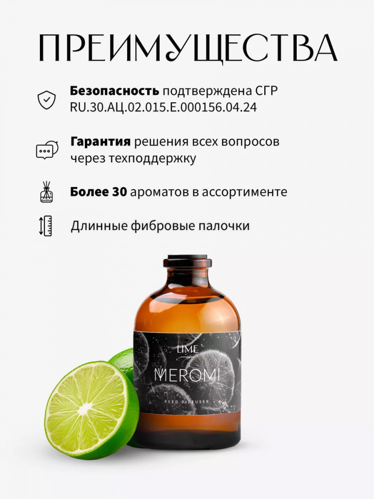 Meromi Диффузор-ароматизатор для дома Lime & Ginger «Лайм-имбирь»