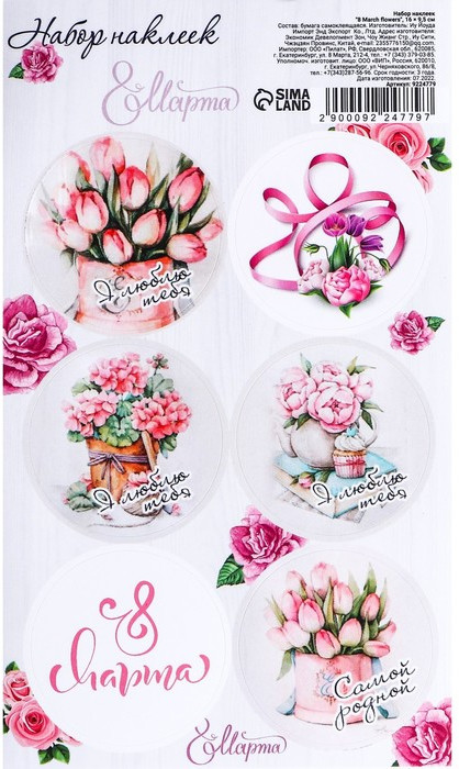 | Upak Land Набор наклеек для цветов и подарков «8 March flowers»