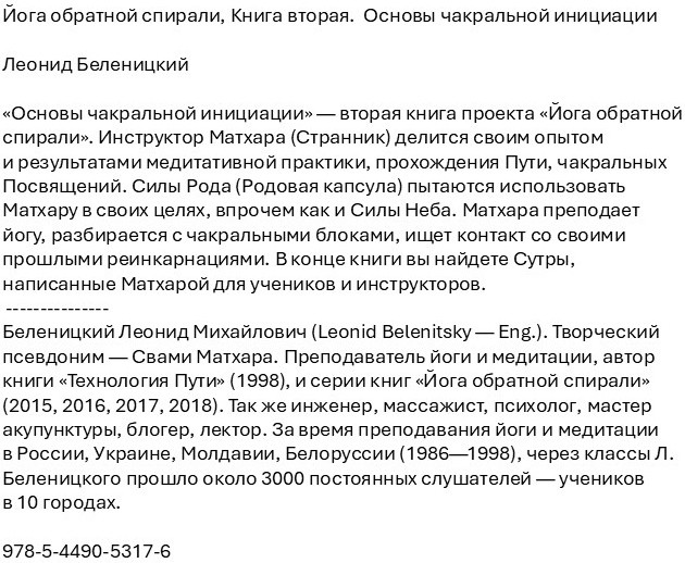 Йога обратной спирали. Основы чакральной инициации. Книга втораяВ данный момент этот товар отсутствует в продаже. Возможно, у нас найдется аналогичный или похожий товар здесь. «Основы чакральной инициации» — вторая книга проекта «Йога обратной спирали». Инструктор Матхара (Странник) делится своим опытом и результатами медитативной практики, прохождения Пути, чакральных Посвящений. Силы Рода (Родовая капсула) пытаются использовать Матхару в своих целях, впрочем как и Силы Неба. Матхара преподает йогу, разбирается с чакральными блоками, ищет контакт со своими прошлыми реинкарнациями. В конце книги вы найдете Сутры, написанные Матхарой для учеников и инструкторов. |