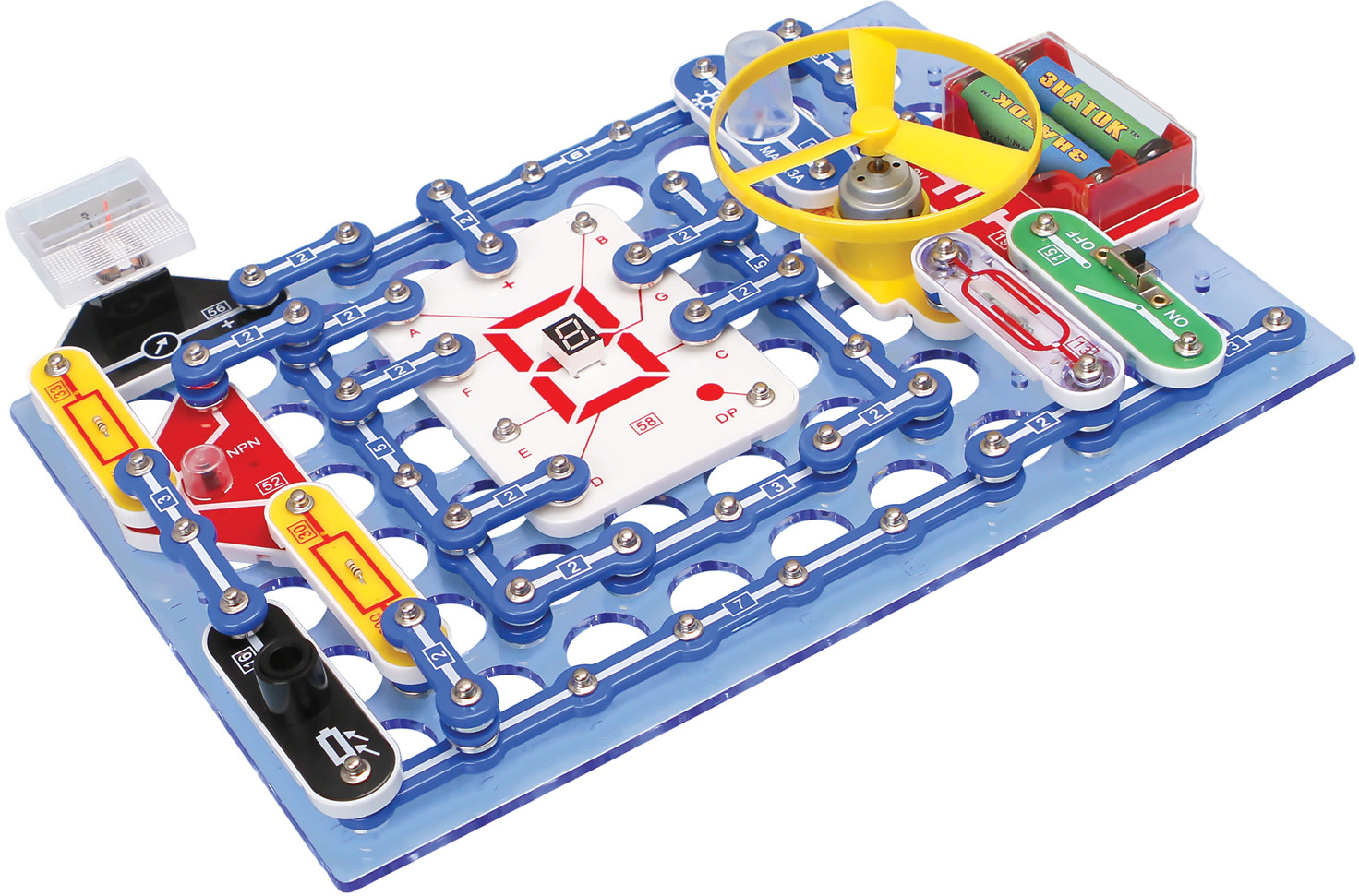 Летающий пропеллер, лампа, радиоприёмники, светодиодные фонарики, сирены, охранные сигнализации, музыкальные звонки, автоматические осветители, детектор лжи, измерительные приборы — все это и многое другое вы сможете собрать при помощи этого конструктора.