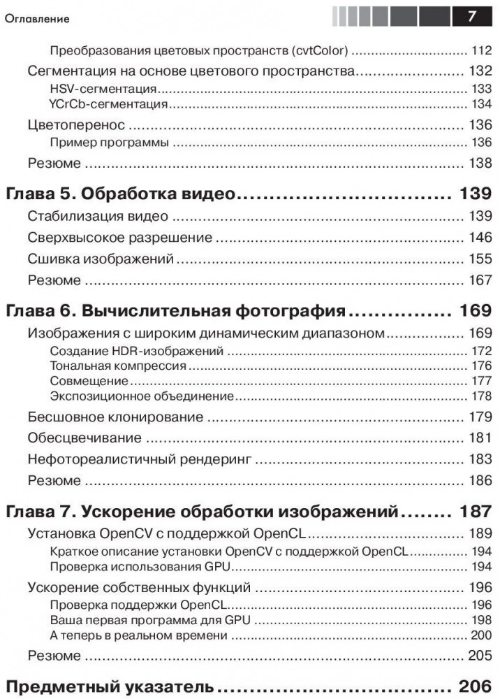 Сначала рассказывается об установке библиотеки, описывается ее общая структура и приводятся простые примеры чтения и записи изображений и видео. Далее рассматривается фильтрация изображений и манипуляции с цветом. Вы узнаете о таких методах обработки, как ретуширование, очистка от шумов и создание HDR-изображений. В последней главе речь пойдет о повышении быстродействия за счет использования графических процессоров. Прочитав книгу, вы сможете создавать интересные и эффективные приложения для обработки изображений. Все рассмотренные темы иллюстрируются примерами. |