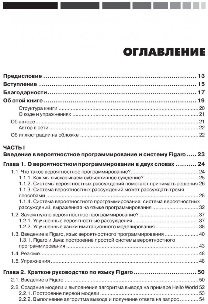 Вероятностное программирование на практикеВ данный момент этот товар отсутствует в продаже. Возможно, у нас найдется аналогичный или похожий товар здесь. Вероятностное программирование — это новый способ создания вероятностных моделей, позволяющих предсказывать или выводить новые факты, которых нет в результатах наблюдений. Это позволяет, к примеру, прогнозировать такие будущие события, как тенденции продаж, отказы вычислительных систем, исходы экспериментов и многое другое. Книга представляет собой введение в вероятностное программирование для программистов-практиков. Автор почти сразу переходит к практическим примерам: построению фильтра спама, диагностике ошибок в вычислительной системе, восстановлению цифровых изображений. Вы познакомитесь с вероятностным выводом, где алгоритмы помогают прогнозировать, например, использование социальных сетей. Попутно узнаете о применении функционального стиля программирования для анализа текстов, объектно-ориентированных моделей — для прогнозирования распространения твитов, и моделей с открытой вселенной — для измерения явлений, имеющих место в социальной сети. В книге есть также главы о том, как вероятностные модели помогают в принятии решений и моделировании динамических систем. Собираемые вами данные о клиентах, продуктах и пользователях сайта могут оказать помощь не только в интерпретации прошлого, но и в предсказании будущего! |